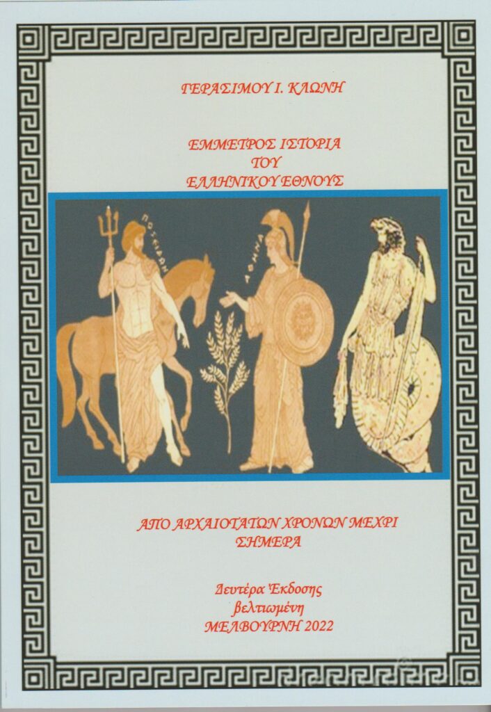Το εξώφυλλο του βιβλίου του Γεράσιμου Κλωνή «ΕΜΜΕΤΡΟΣ ΙΣΤΟΡΙΑ ΤΟΥ ΕΛΛΗΝΙΚΟΥ ΕΘΝΟΥΣ – Από αρχαιοτάτων χρόνων μέχρι σήμερα».