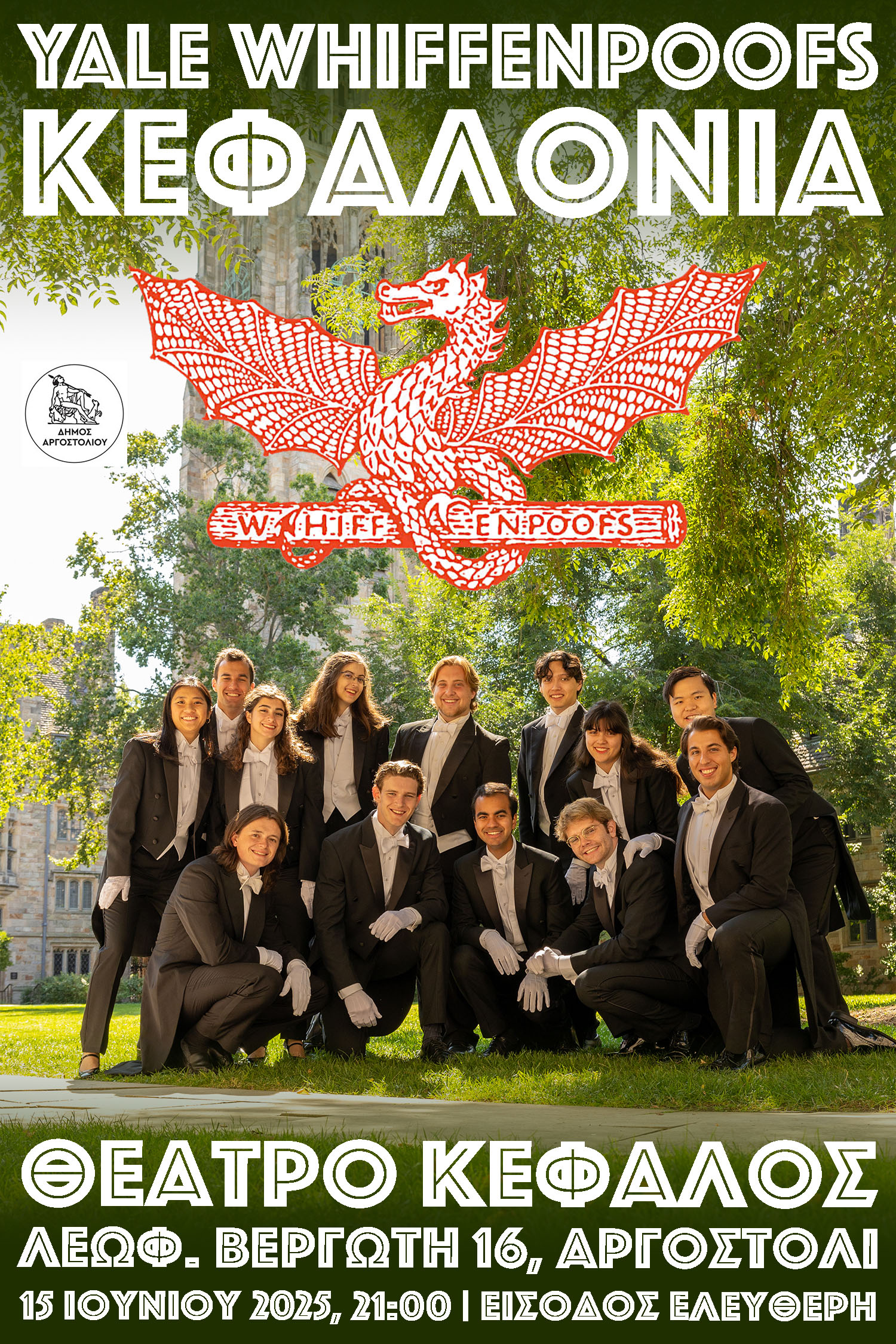 Την Κυριακή 15 Ιουνίου, στις 21:00, το Δημοτικό Θέατρο “Κέφαλος” θα γεμίσει με τις αρμονίες και την εκρηκτική ενέργεια των θρυλικών φωνών του Πανεπιστημίου του Γέιλ και η Είσοδος είναι Ελεύθερη.