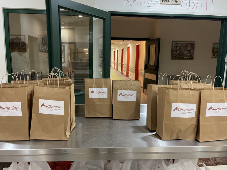 Ένα μεγάλο ευχαριστώ επίσης στο Κτήμα Manzavino για την ευγενική προσφορά 30 φιαλών κρασιού, λευκού και ερυθρού οίνου, συμβάλλοντας με τον δικό του τρόπο στο πασχαλινό τραπέζι των φιλοξενούμενων του γηροκομείου αυτές τις Άγιες ημέρες.