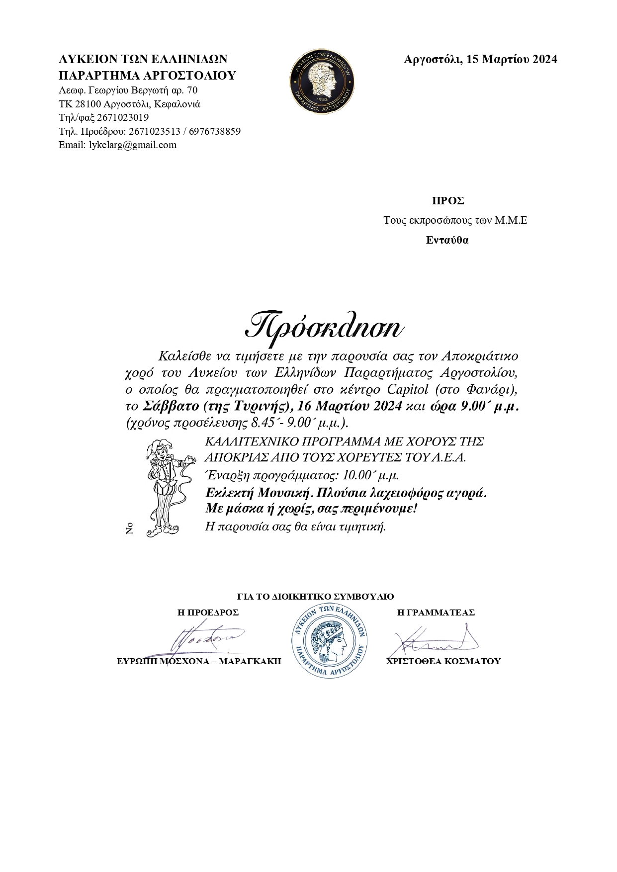 Ο Αποκριάτικος Χορός του Λυκείου Ελληνίδων το Σάββατο 16 Μαρτίου στο Capitol με πλούσιο καλλιτεχνικό πρόγραμμα