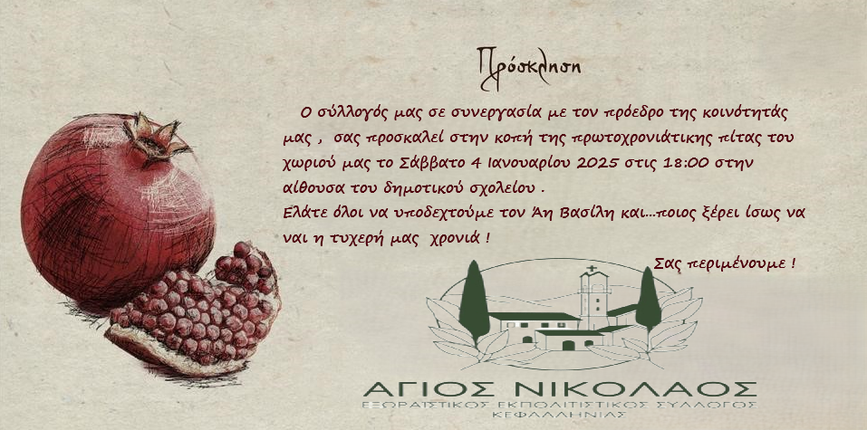 Ο Εξωραϊστικός Πολιτιστικός Σύλλογος “Άγιος Νικόλαος” κόβει την πίτα του το Σάββατο 4 Ιανουαρίου