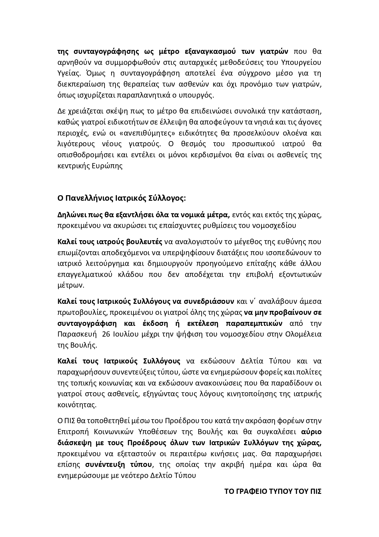 Όπως λοιπόν αποφασίστηκε από τη συνέλευση των Προέδρων και από του ΠΙΣ, καλούμε κι εμείς τους ιδιώτες ιατρούς μέλη μας να απέχουν από την ηλεκτρονική συνταγογράφηση την Παρασκευή 26/07/2024 και τη Δευτέρα 29/07/2024.