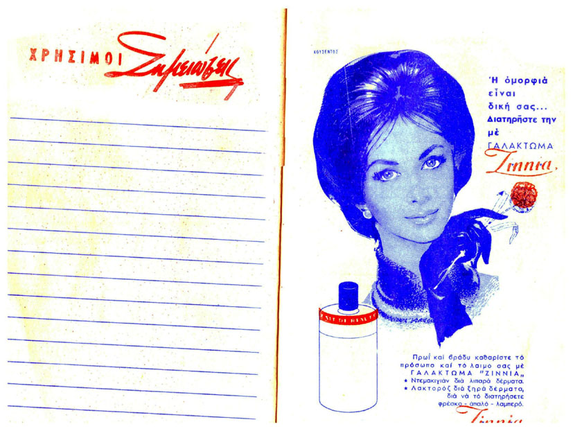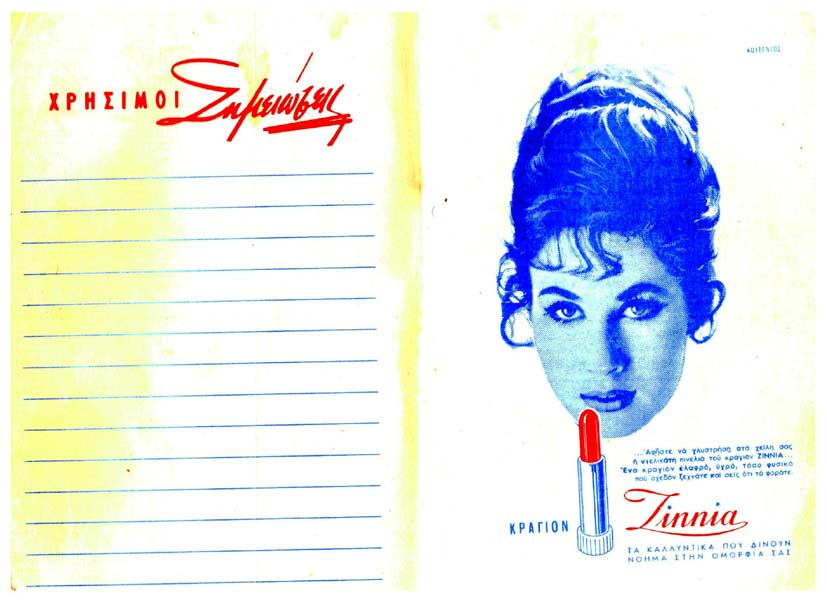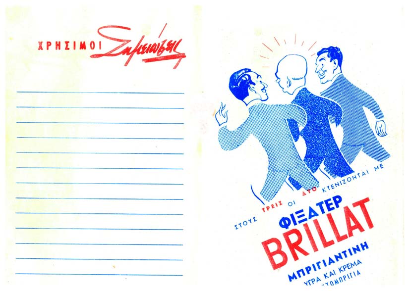 Στα 1970 πρωτοπορεί με την έκδοση μιας ατζέντας για να διαφημίσει τα προϊόντα του, τα οποία και τα έφερνε από την Αθήνα. Ήταν από τις πρώτες διαφημιστικές μετασεισμικές ατζέντες – ημερολόγια, καταστημάτων του Ληξουρίου, και μέσα υπήρχε και ο κατάλληλος χώρος, για να σημειώνει η πελάτισσά του, τόσο την επίσκεψη, όσο και στοιχεία, αγοράς, χρέωση μπιστιού (εν πιστώσει), διαστάσεις σώματος και λοιπά.