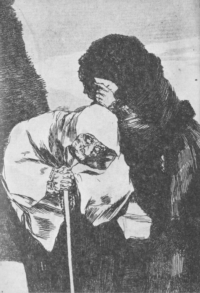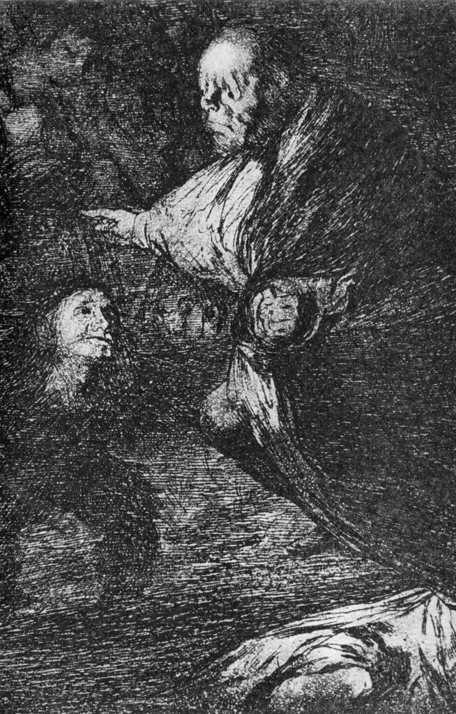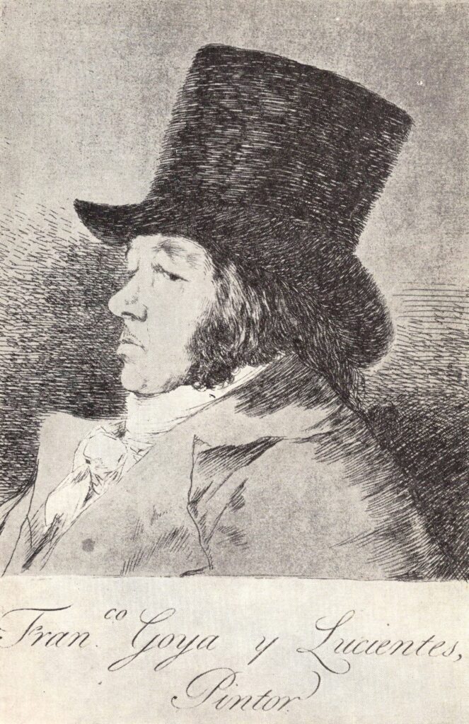 Ο Ισπανός ζωγράφος και χαράκτης Φρανθίσκο Γκόγια / Francisco Goya y lucientes γεννήθηκε το 1746 στο χωριό Φουεντετόδος, όπου έζησε τα παιδικά του χρόνια πριν μετακομίσουν οικογενειακά στη Σαραγόσα. Σε ηλικία δεκατεσσάρων χρόνων ξεκίνησε μαθήματα ζωγραφικής. Το 1764 και το 1766 συμμετείχε σε εξετάσεις για την υποτροφία που είχε θεσπίσει η Βασιλική Ακαδημία του Σαν Φερνάρντο στη Μαδρίτη, στις οποίες απέτυχε. Αργότερα, υπήρξε μαθητής του διακεκριμένου αυλικού ζωγράφου Φρανσίσκο Μπαγέ, στη Μαδρίτη. Το 1771 ταξίδεψε στη Ρώμη όπου συνέχισε την εκπαίδευσή του, ενώ μετά την επιστροφή του ανέλαβε τις πρώτες σημαντικές παραγγελίες για εκκλησίες και μοναστήρια της περιοχής της Σαραγόσας, κυρίως νωπογραφίες. Το 1773 νυμφεύτηκε την Χοσέφα Μπαγέ, αδελφή του διαπρεπούς δασκάλου του και εγκαταστάθηκε στη Μαδρίτη. Το 1780 εκλέχθηκε μέλος της Βασιλικής Ακαδημίας Καλών Τεχνών του Σαν Φερνάντο. Πέντε χρόνια αργότερα, διορίστηκε βοηθός διευθυντή του τμήματος ζωγραφικής της Ακαδημίας, ενώ το 1786 ανακηρύχθηκε  «ζωγράφος του βασιλιά» της Ισπανίας Καρόλου Γ’.  Σύντομα εξελίχθηκε σε έναν από τους διασημότερους  ζωγράφους και χαράκτες. Το 1795 διορίστηκε Διευθυντής Ζωγραφικής της Ακαδημίας, όμως παραιτήθηκε δύο χρόνια μετά, εξαιτίας προβλημάτων υγείας, που είχαν εμφανιστεί από το 1792, από μία σοβαρή νόσο που προξένησε την μόνιμη απώλεια της ακοής. Τα συμπτώματα του συνδρόμου της πάθησης του ήταν περιορισμένη εγκεφαλική λειτουργία και προσωρινή απώλεια όρασης, ακοής και ισορροπίας. Πιθανόν συφιλιδικής προέλευσης, ανίατα τότε. Το 1799, ονομάστηκε «Πρώτος Ζωγράφος της Αίθουσας του Βασιλιά». Ο Γκόγια υπήρξε το πρότυπο της μοντέρνας συνείδησης του καλλιτέχνη, που θεωρεί υποχρέωση του να πάρει θέση απέναντι στα μεγάλα κοινωνικά προβλήματα της εποχής του. Αυτήν ακριβώς την «μοντέρνα» πλευρά του αποκαλύπτουν οι σειρές από τις χαλκογραφίες του. Τον ίδιο χρόνο, τυπώθηκε και η δημοφιλής σειρά χαρακτικών του, με τίτλο «Καπρίτσια», ενότητα που είχε ξεκινήσει από το 1796 και επιβεβαίωνε μία γενικότερη αλλαγή στο ύφος του, αν και οι επίσημες παραγγελίες που αναλάμβανε διατηρούσαν ακόμα τα καθιερωμένα παραδοσιακά μοτίβα. Τα «Καπρίτσια», με 80 χαρακτικά τα δημοσίευσε σε ώριμη ηλικία το 1799. Ο κόσμος είχε βιώσει τη Γαλλική Επανάσταση και ο ίδιος είχε περάσει κοντά από τον θάνατο και είχε βιώσει έναν «στραγγαλιστικό έρωτα», κατά την έκφραση του Μπαλζάκ με τη Δούκισσα της Άλμπα. Ο Γκόγια χωρίς ίχνος ωραιοποίησης, ακαδημαϊσμού και νεοκλασικισμού μας φέρνει σε πρώτο πλάνο τον άνθρωπο και τα συναισθήματά του και τα συνεχή δεινά που βιώνει με εφιαλτική οπτική απόδοση. Με την διαδικασία αυτή ο  Γκόγια και η προσωπική ζωγραφική του είναι ένας καίριος μεταβατικός σύνδεσμος από τον συναισθηματικό ανθρωπισμό του Ρομαντισμού, στα δυνατά και ενίοτε φρικτά συναισθήματα του Εξπρεσιονισμού. Πρόθεση της τέχνης του είναι να προκαλέσει ζωηρή αισθητική συγκίνηση. Σε αυτό συντελεί τόσο η θεματική, όσο και η απαράμιλλη τεχνική του. Η έμφαση είναι στο χρώμα και το σχεδόν ασαφές ιμπρεσιονιστικό περίγραμμα. Το έργο βρίσκεται σε διαρκή κίνηση, πάλλεται από ενέργεια, οι φωτοσκιάσεις δημιουργούν κλίμα δραματικό και καθηλωτικό. Ο Σαρλ Μπωντλαίρ αναφέρει: « Ημεγάλη αξία του Γκόγια είναι να δημιουργεί το τερατώδες με αληθοφάνεια». Επίσης ο θεόφιλος  Γκωτιέ επισημαίνει: «Οι συνθέσεις του Γκόγια είναι βαθιές νύχτες, 