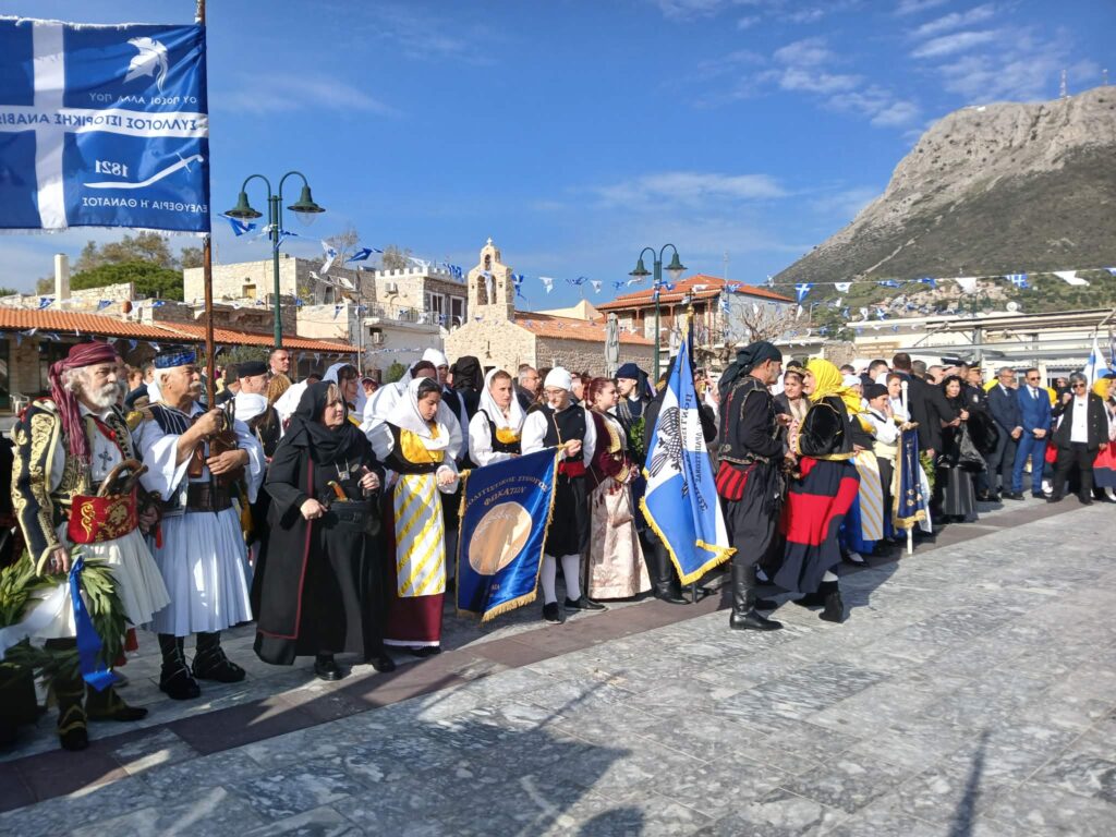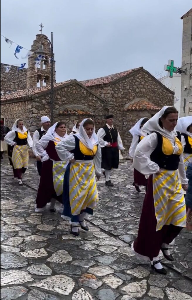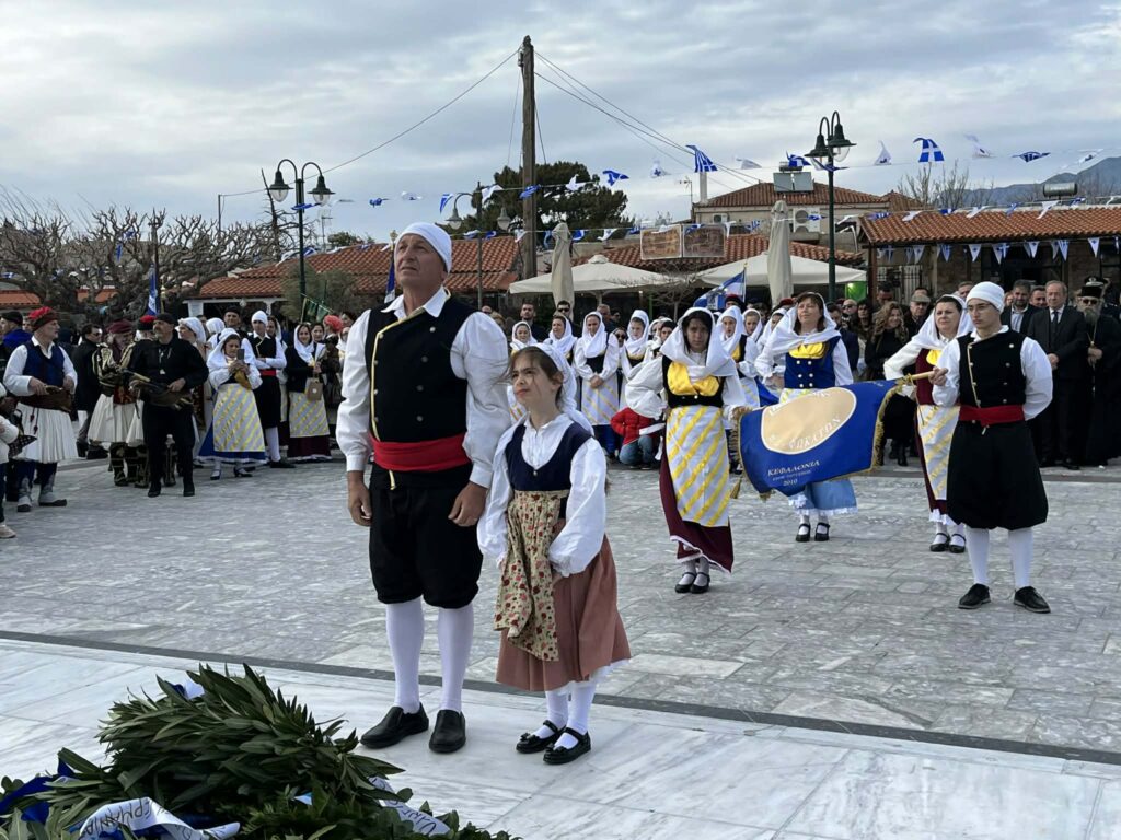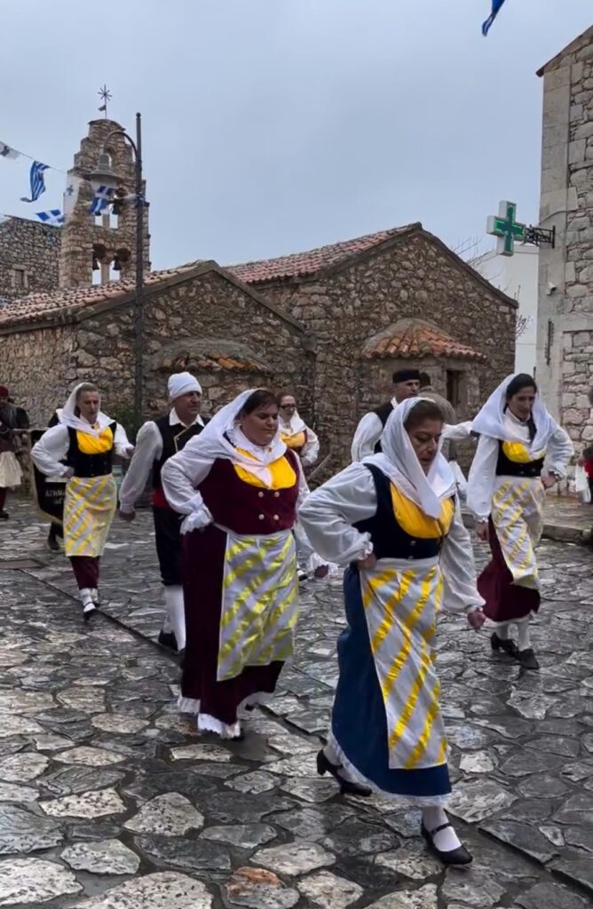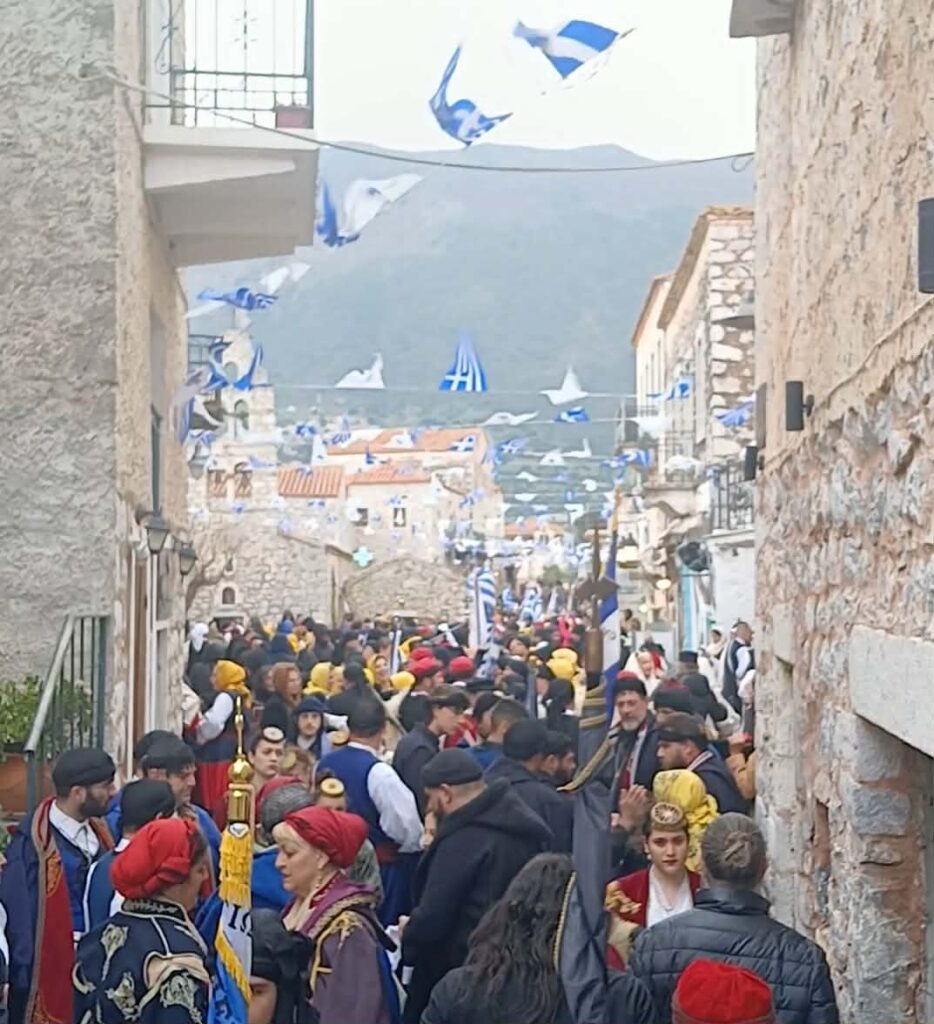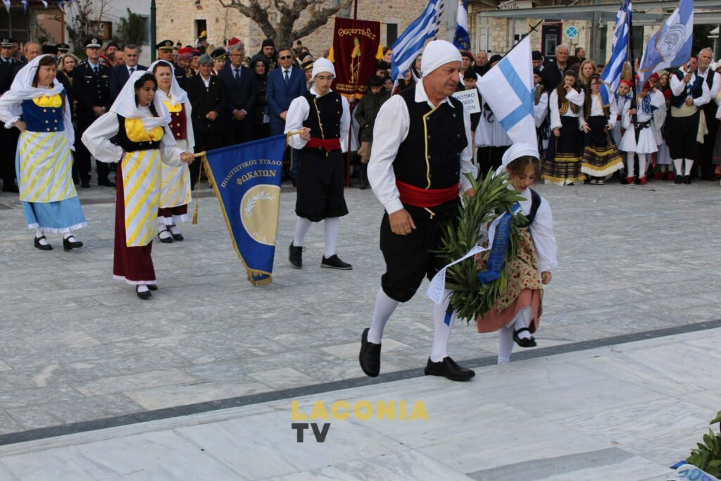Στη συνέχεια, μετά την επίσημη δοξολογία στον Ιερό Ναό Παμμεγίστων Ταξιαρχών και την απόδοση τιμών στους ήρωες της Μάνης, παρά τις αντίξοες καιρικές συνθήκες, ο Π.Σ. Φωκάτων παρέλασε με υπερηφάνεια και λεβεντιά μαζί με συλλόγους από όλη την Ελλάδα, σχολεία πρωτοβάθμιας και δευτεροβάθμιας εκπαίδευσης, στρατιωτικά τμήματα, καθώς και αναπήρους και θύματα πολέμου του Νομού Λακωνίας.