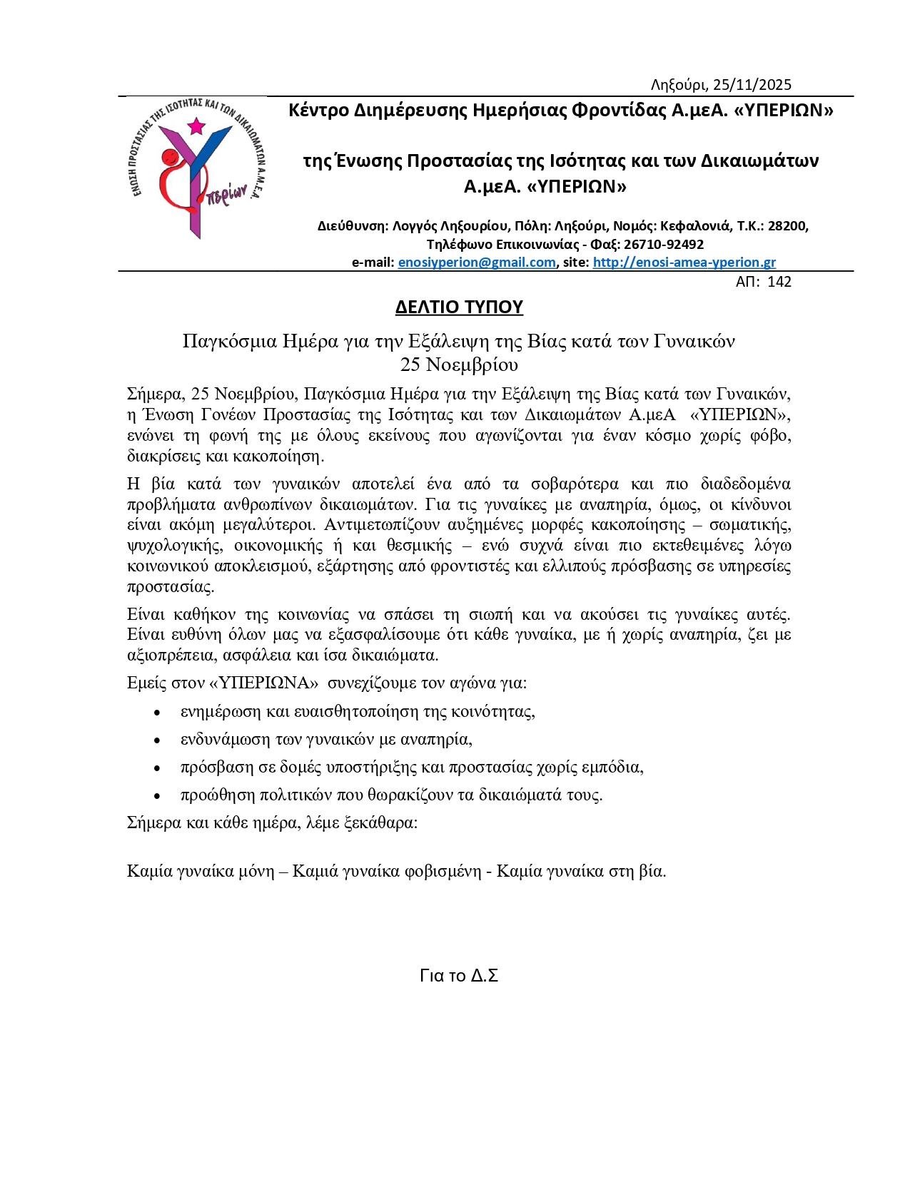 Παγκόσμια Ημέρα για την Εξάλειψη της Βίας κατά των Γυναικών 25 Νοεμβρίου