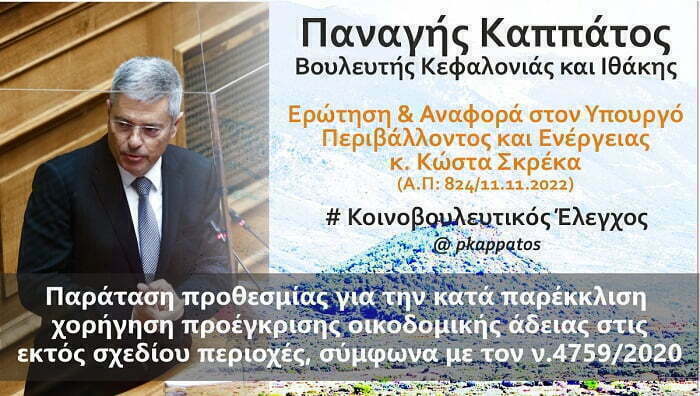 Παναγής Καππάτος – Ερώτηση και Αναφορά για την κατά παρέκκλιση χορήγηση οικοδομικής άδειας στις εκτός σχεδίου περιοχές