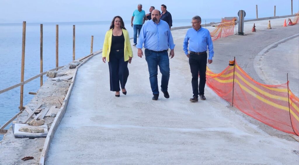 Ακολούθως, επισκεφθήκαμε από κοντά τα έργα που υλοποιούνται -έπειτα από τον μεσογειακό κυκλώνα του Ιανού- στον επαρχιακό δρόμο Φρίκες – Κιόνι και συνεχίζονται από την ΠΙΝ.