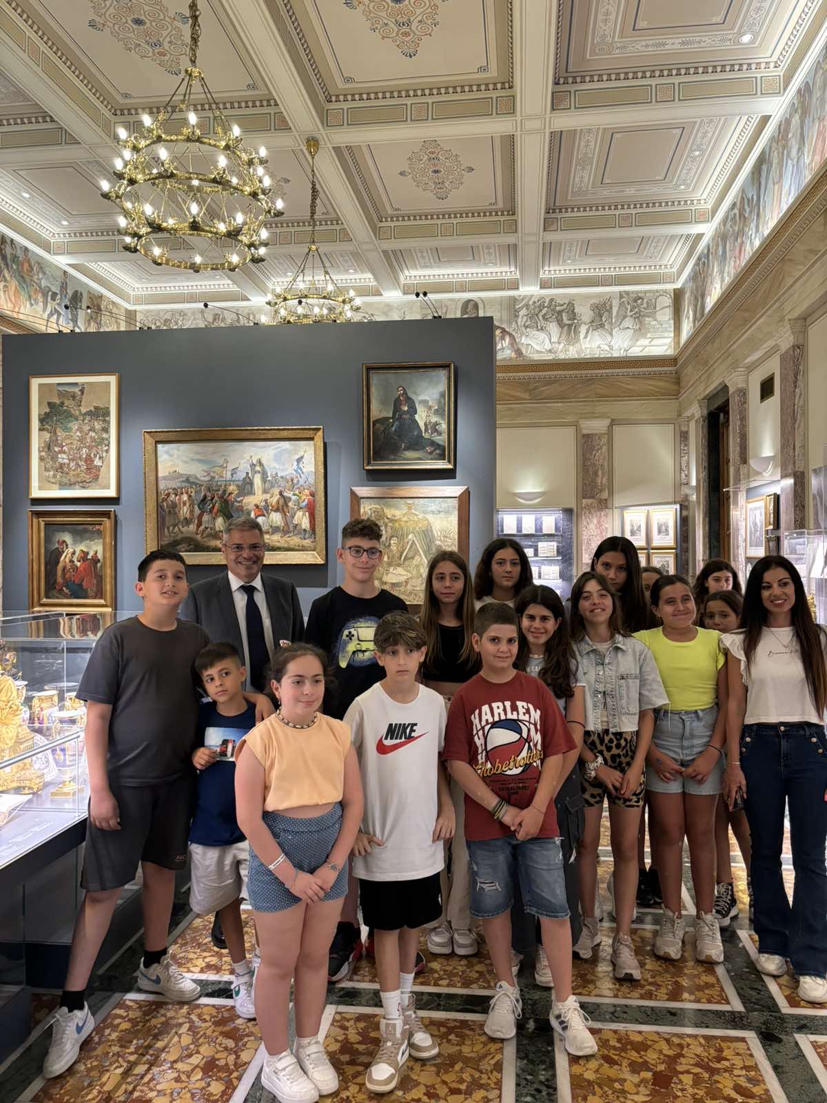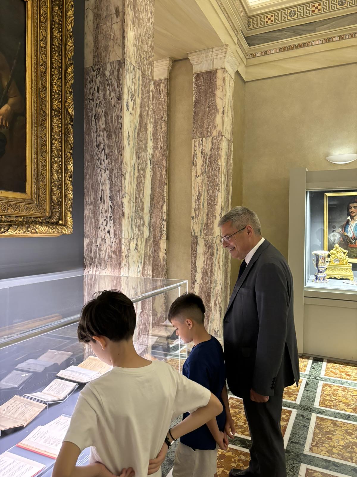 Στο πλαίσιο της εκπαιδευτικής επίσκεψης, ξεναγήθηκαν στην έκθεση που φιλοξενείται στην Αίθουσα Ελευθέριος Βενιζέλος, όπου εκτίθενται μοναδικά εικαστικά και κειμενικά τεκμήρια που αφηγούνται την πορεία των Ελλήνων προς την Ελευθερία.