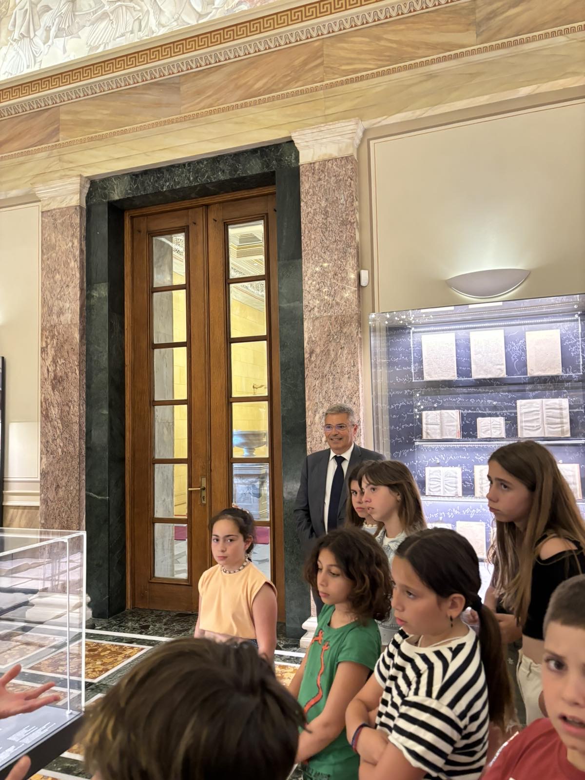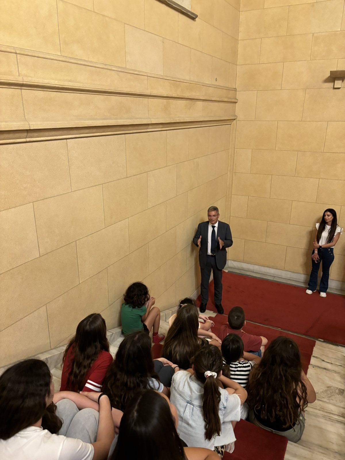 Οι μαθητές και οι μαθήτριες περιηγήθηκαν στους χώρους του Κοινοβουλίου, ενημερώθηκαν για την ιστορία του και τη λειτουργία του.