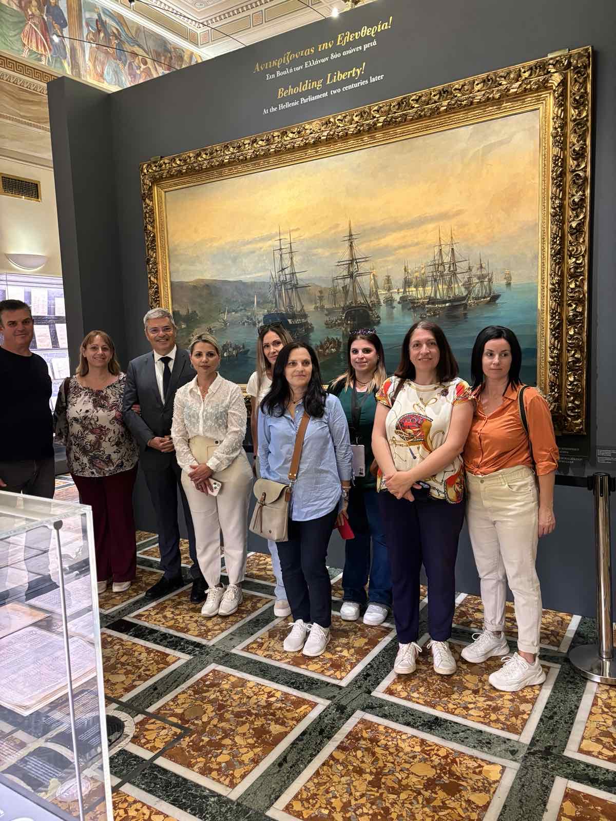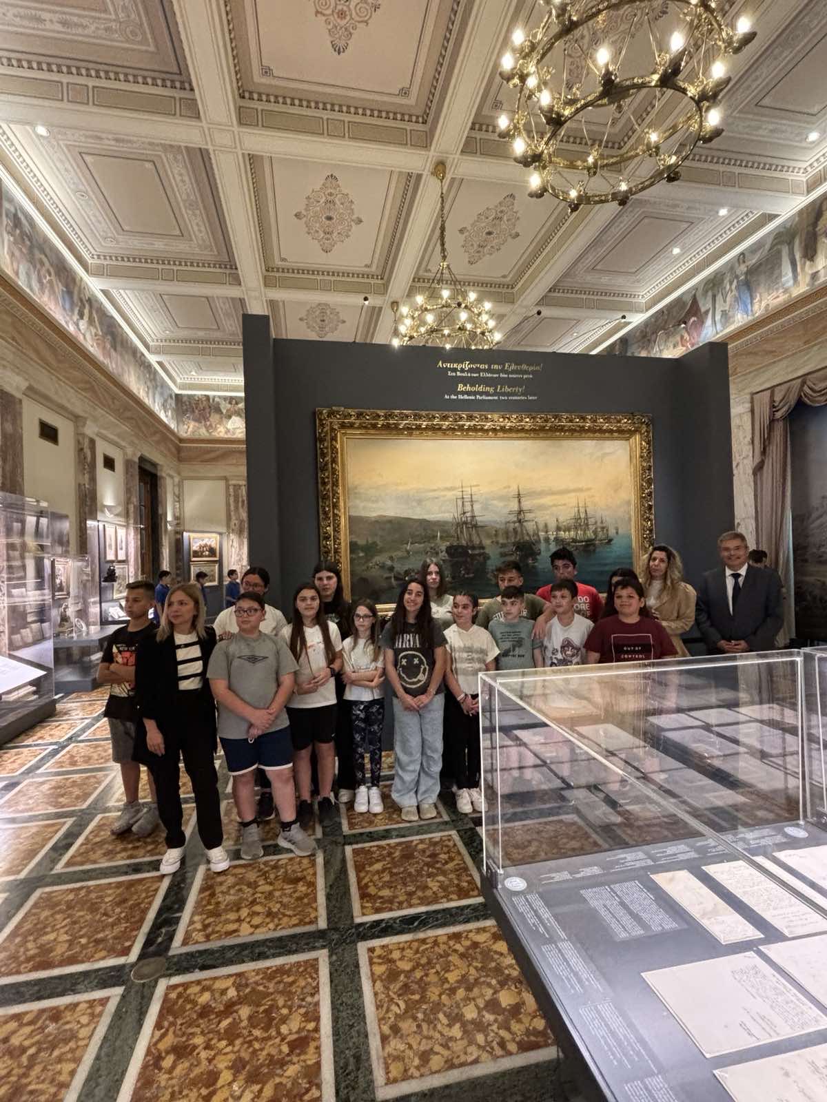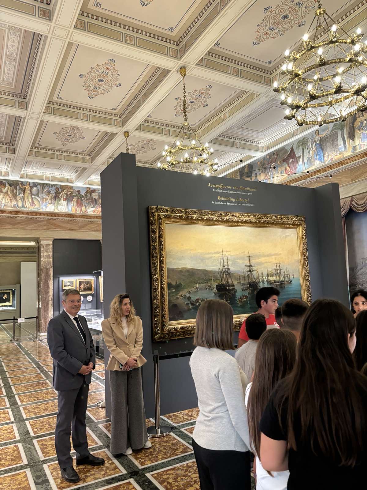 Στο πλαίσιο της εκπαιδευτικής επίσκεψης, οι μαθητές και οι μαθήτριες της ΣΤ’ τάξης περιηγήθηκαν στους χώρους του Κοινοβουλίου και γνώρισαν από κοντά την ιστορία του. Ξεναγήθηκαν στην έκθεση με θέμα: «Αντικρίζοντας την Ελευθερία! Στη Βουλή των Ελλήνων δύο αιώνες μετά», που φιλοξενείται στην Αίθουσα Ελευθέριος Βενιζέλος.