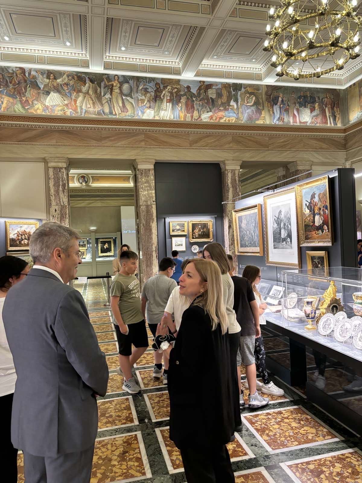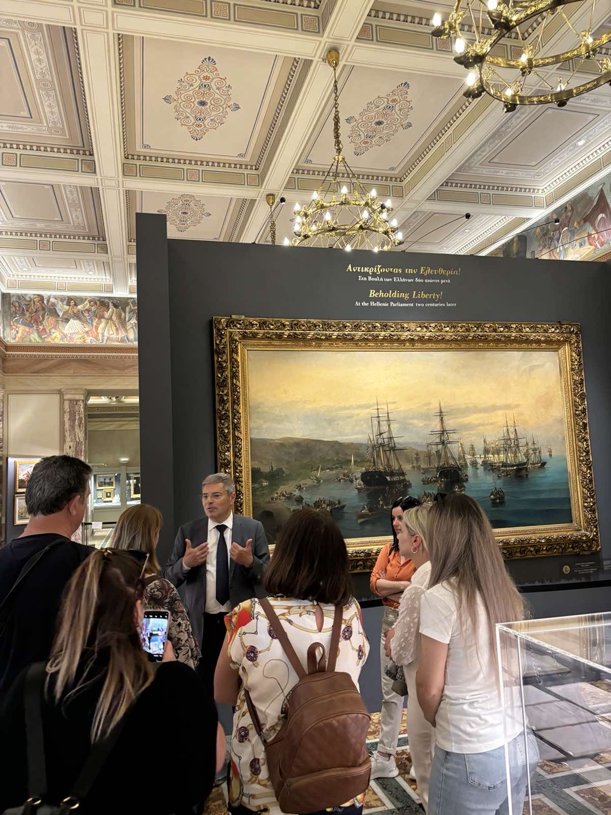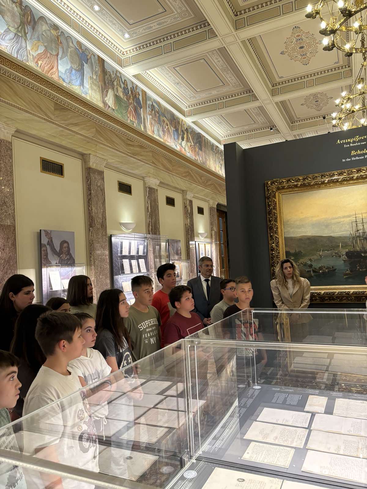 Στο πλαίσιο της εκπαιδευτικής επίσκεψης, οι μαθητές και οι μαθήτριες της ΣΤ’ τάξης περιηγήθηκαν στους χώρους του Κοινοβουλίου και γνώρισαν από κοντά την ιστορία του. Ξεναγήθηκαν στην έκθεση με θέμα: «Αντικρίζοντας την Ελευθερία! Στη Βουλή των Ελλήνων δύο αιώνες μετά», που φιλοξενείται στην Αίθουσα Ελευθέριος Βενιζέλος.