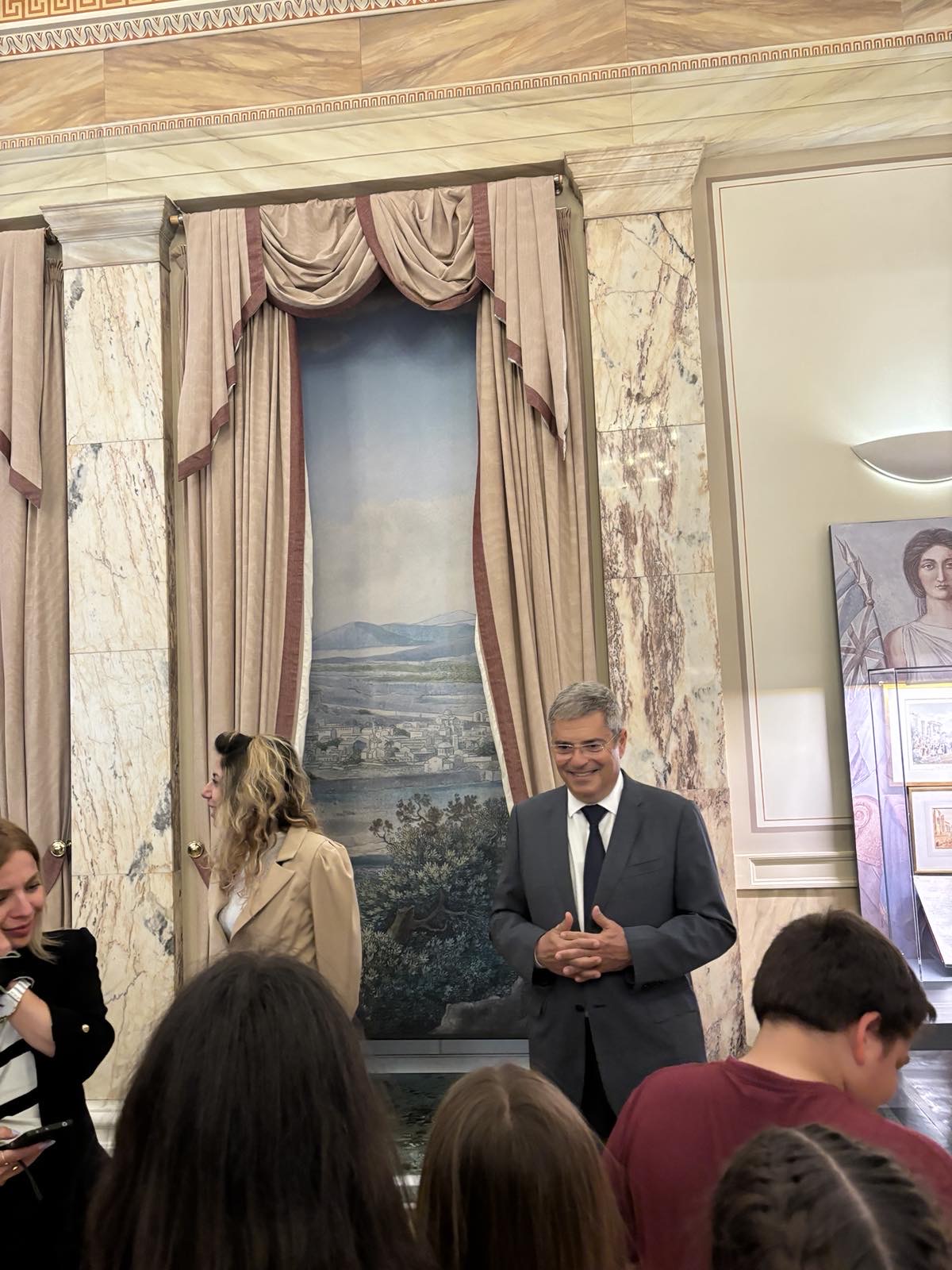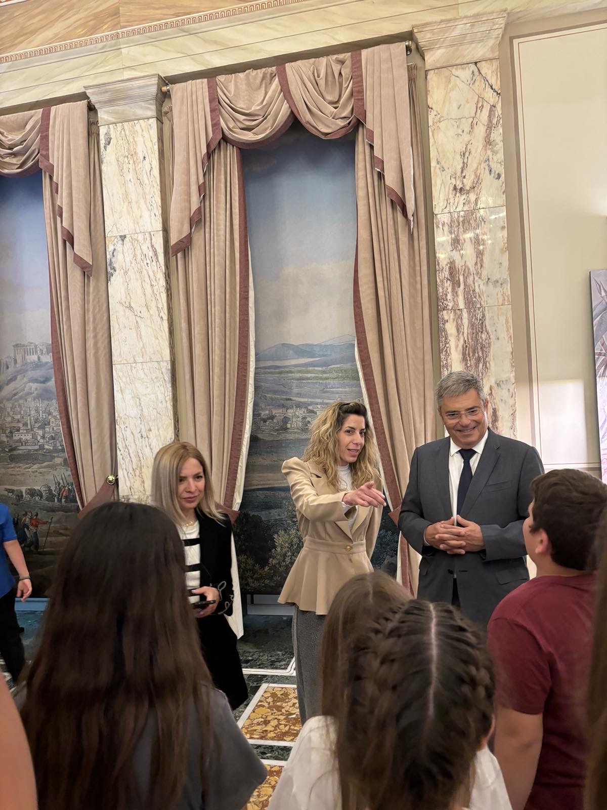 Κατά την διάρκεια της ξενάγησης, είχα την ευκαιρία να συνομιλήσω με τους μικρούς μαθητές, τους εκπαιδευτικούς και τους κηδεμόνες τους. Το έμπρακτο ενδιαφέρον τους και οι ερωτήσεις που μου έθεσαν στάθηκαν αφορμή για να τους ενημερώσω σχετικά με τη θεσμική σπουδαιότητα των διαδικασιών που διεξάγονται στη Βουλή αλλά και για τα καθήκοντα και τις υποχρεώσεις του βουλευτικού αξιώματος.