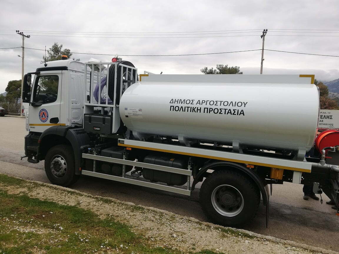 Παραλάβαμε σήμερα ένα νέο, υπερσύγχρονο Υδροφόρο Όχημα για το Τμήμα Πολιτικής Προστασίας του Δήμου Αργοστολίου. Το νέο όχημα προϋπολογισμού 148.000€ αποχτήθηκε με χρηματοδότηση από το ΕΣΠΑ και έχει χωρητικότητα 6.000lt νερού.