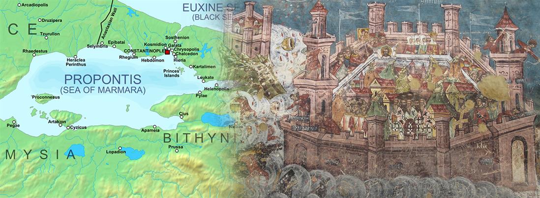 Το καλοκαίρι του 626 μ.Χ., ένας μεγάλος πολυεθνικός στρατός υπό την ηγεσία του Χαγανάτου των Αβάρων επιτέθηκε στην Κωνσταντινούπολη, προσπαθώντας να την κατακτήσει. Στον απόηχο επιβίωσης αυτής της επίθεσης, πολλές προσωπικότητες που συνεδέοντο στενά με τον Πατριάρχη Σέργιο έγραψαν κείμενα που μνημονεύουν τη μάχη, στην οποίαν οι εικόνες και τα κειμήλια που αναφέρονται στη Θεοτόκο παρουσιάζονται σε μεγάλο βαθμό. Αυτά τα κείμενα του Γεωργίου Πισίδη και του Θεόδωρου Σύνκελλου καταγράφουν ότι η Θεοτόκος επενέβη ενεργά και συμμετείχε στη μάχη λόγω των προσευχών του Σεργίου και της παρουσίασης μιας Αχειροποίητης Εικόνας στις επάλξεις, σε μια πράξη όμοια με του Μωυσή.