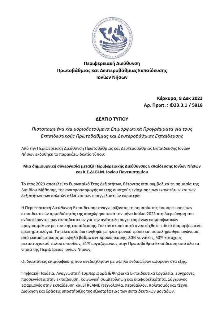 Πιστοποιημένα Επιμορφωτικά Προγράμματα της ΠΙΝ για εκπαιδευτικούς Πρωτοβάθμιας και Δευτεροβάθμιας εκπαίδευσης