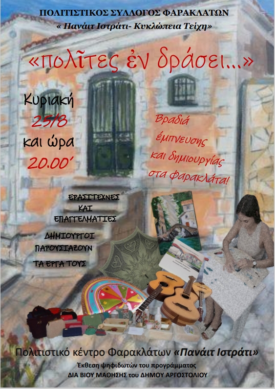“Πολίτες εν δράσει”-Βραδιά έμπνευσης και δημιουργίας στα Φαρακλάτα την Κυριακή 25 Αυγούστου