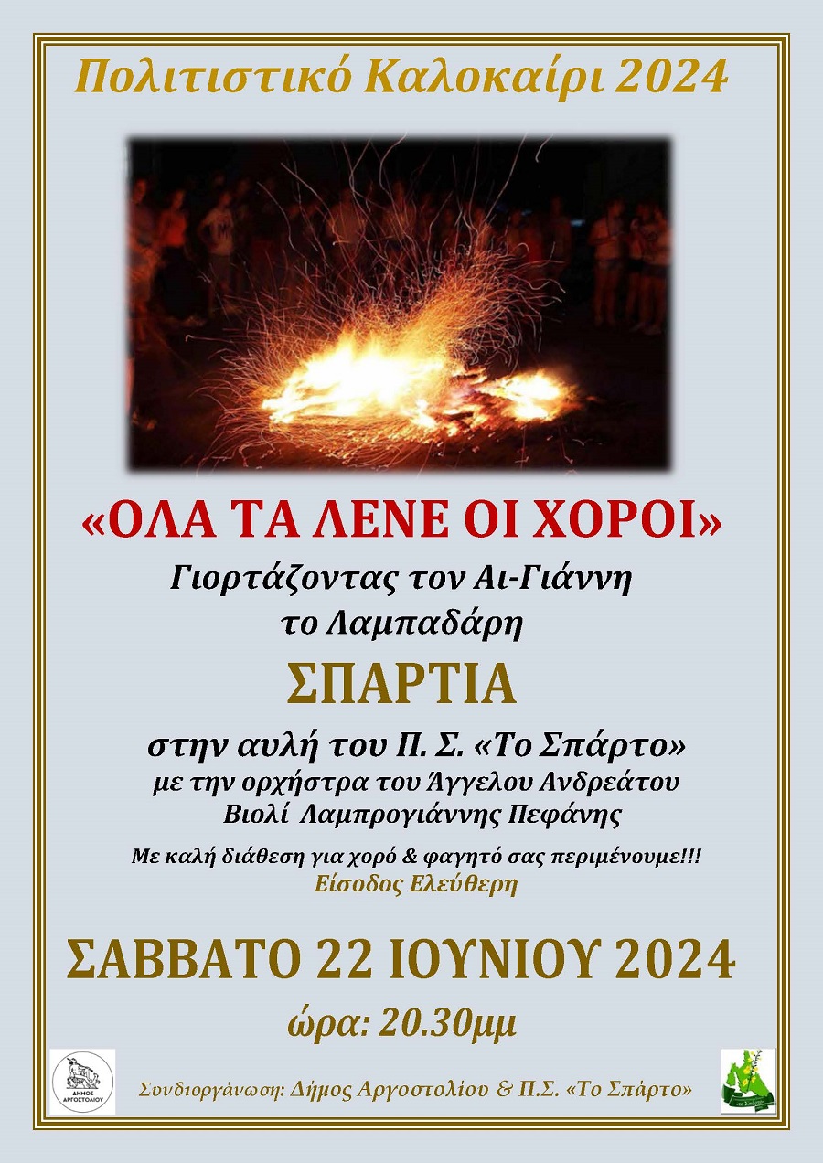 Πολιτιστικό Καλοκαίρι 2024-“Όταν τα λένε οι χοροί” το Σάββατο 22 Ιουνίου στα Σπαρτιά
