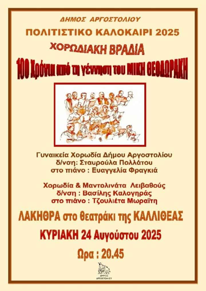 Πολιτιστικό Καλοκαίρι 2025: Οι εκδηλώσεις στον Δήμο Αργοστολίου Κυριακή 24 Αυγούστου