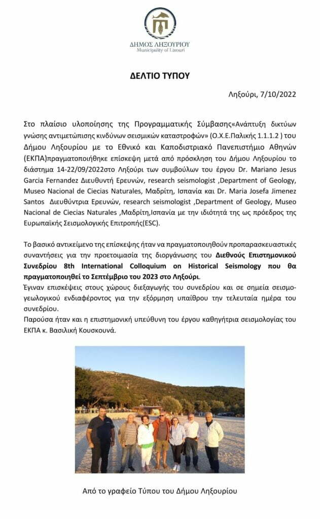 Προπαρασκευαστικές συναντήσεις για την προετοιμασία του συνεδρίου Διεθνούς Επιστημονικού Συνεδρίου 8th International Colloquium on Historical Seismology