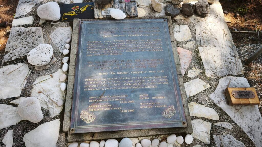 Το μνημείο, που βρίσκεται σε προνομιακή θέση με θέα στο Ιόνιο Πέλαγος, τιμά τη μνήμη των 59 μελών του πληρώματος του βρετανικού υποβρυχίου HMS Perseus, το οποίο βυθίστηκε στις 6 Δεκεμβρίου 1941 μετά από πρόσκρουση σε ιταλική νάρκη, νότια της Κεφαλονιάς, κοντά στην περιοχή των Μαυράτων.