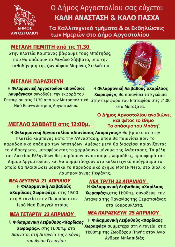 Πρόγραμμα καλλιτεχνικών τμημάτων και εκδηλώσεις επόμενων ημερών στον Δήμο Αργοστολίου