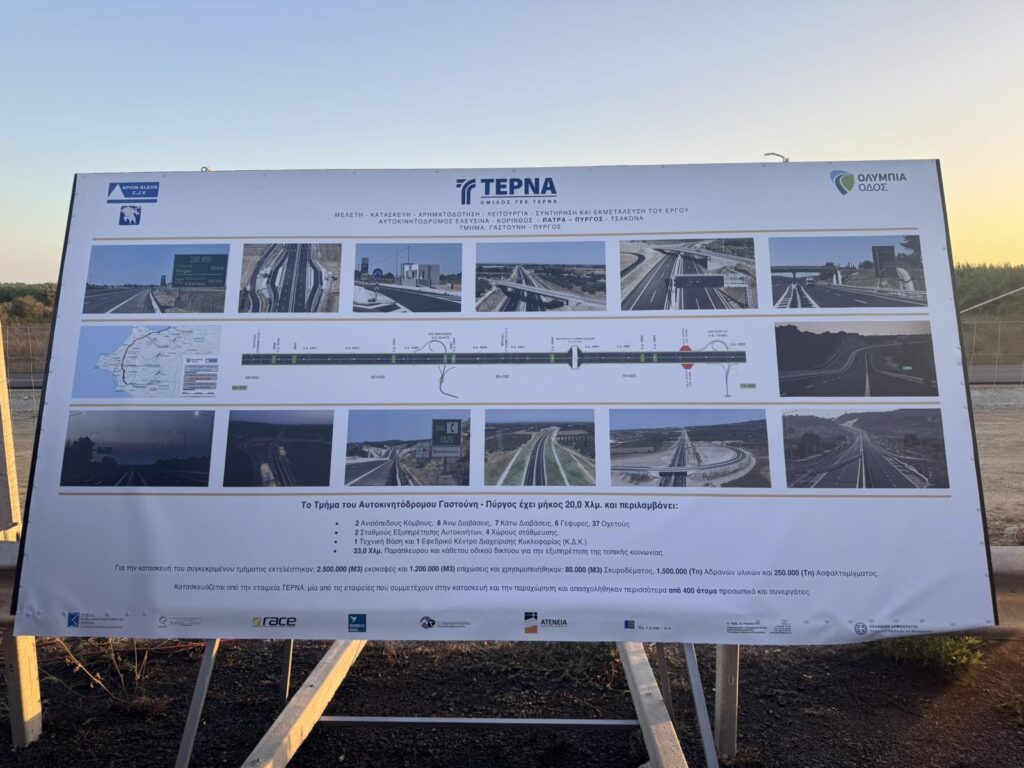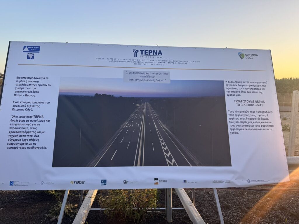 Παραδίδεται στην κυκλοφορία το μεγαλύτερο μέρος του νέου αυτοκινητόδρομου Πατρών – Πύργου, ένα έργο συνολικού μήκους 75 χιλιομέτρων, που αλλάζει ριζικά τα δεδομένα στις μετακινήσεις και στην καθημερινότητα χιλιάδων πολιτών.