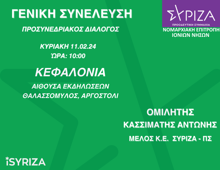 Σήμερα Γενική συνέλευση προσυνεδριακός διάλογος του ΣΥΡΙΖΑ στον Θαλασσόμυλο-Ομιλητής Αντώνης Κασσιμάτης