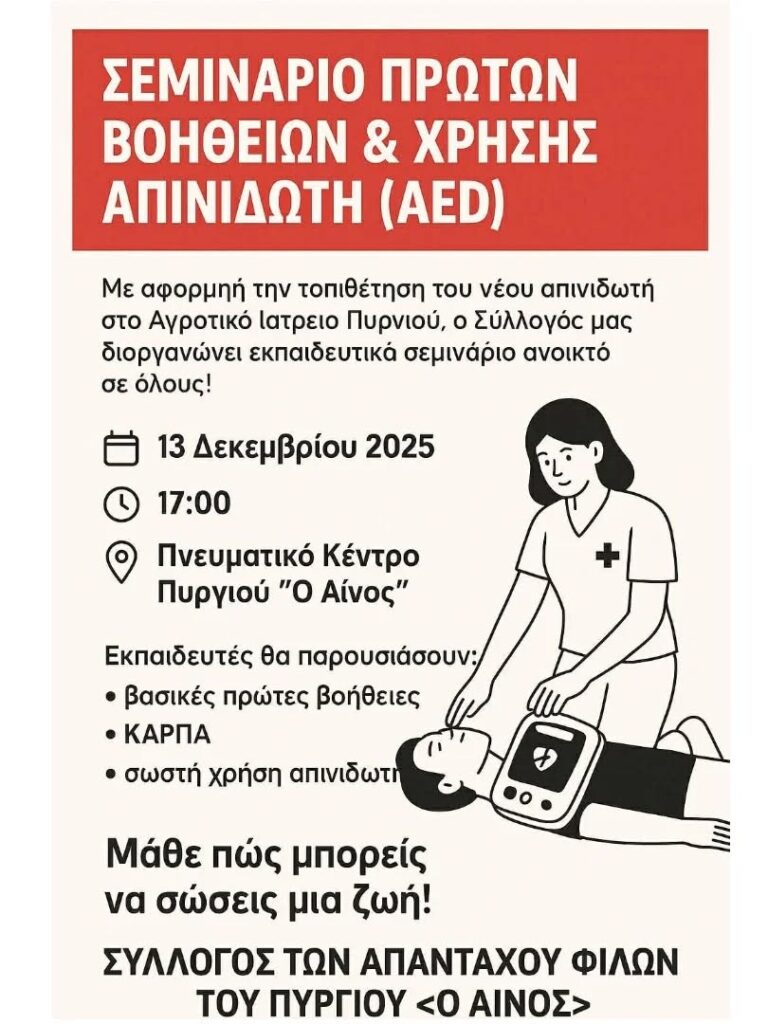 Σεμινάριο Πρώτων Βοηθειών από τον Σύλλογο Απανταχού Φίλων Πυργιού “Ο Αίνος”