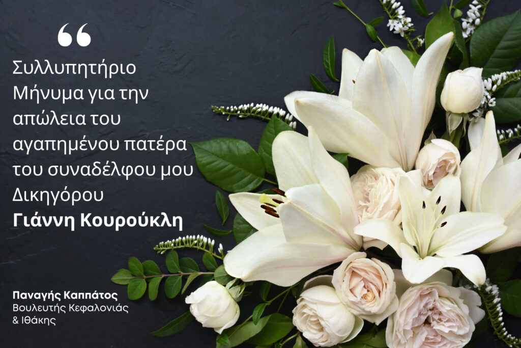 Θα ήθελα να εκφράσω τα θερμά μου συλλυπητήρια στον επικεφαλής της Λαϊκής Συσπείρωσης του Δήμου Αργοστολίου Γιάννη Κουρούκλη για την απώλεια του πατέρα του.