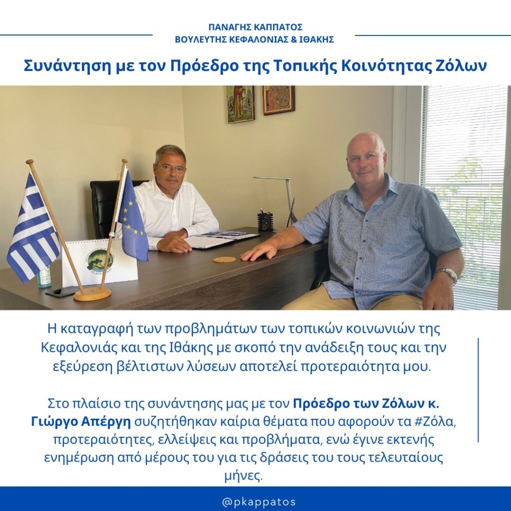 Συνάντηση του Βουλευτή Παναγή Καππάτου με τον Πρόεδρο της Τοπικής Κοινότητας Ζόλων