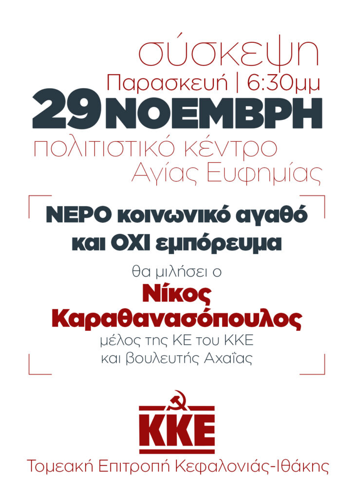 Σύσκεψη την Παρασκευή 29 Νοεμβρίου στην Αγία Ευφημία για το “ΝΕΡΟ κοινωνικό αγαθό και ΟΧΙ εμπόρευμα”