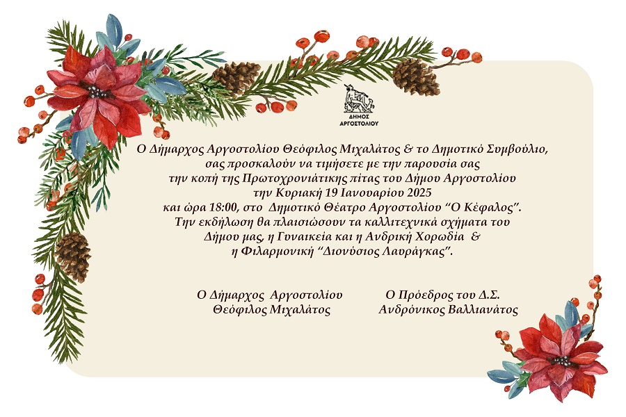 Σήμερα η κοπή της Πρωτοχρονιάτικης πίτας του Δήμου Αργοστολίου-Το πρόγραμμα της εκδήλωσης