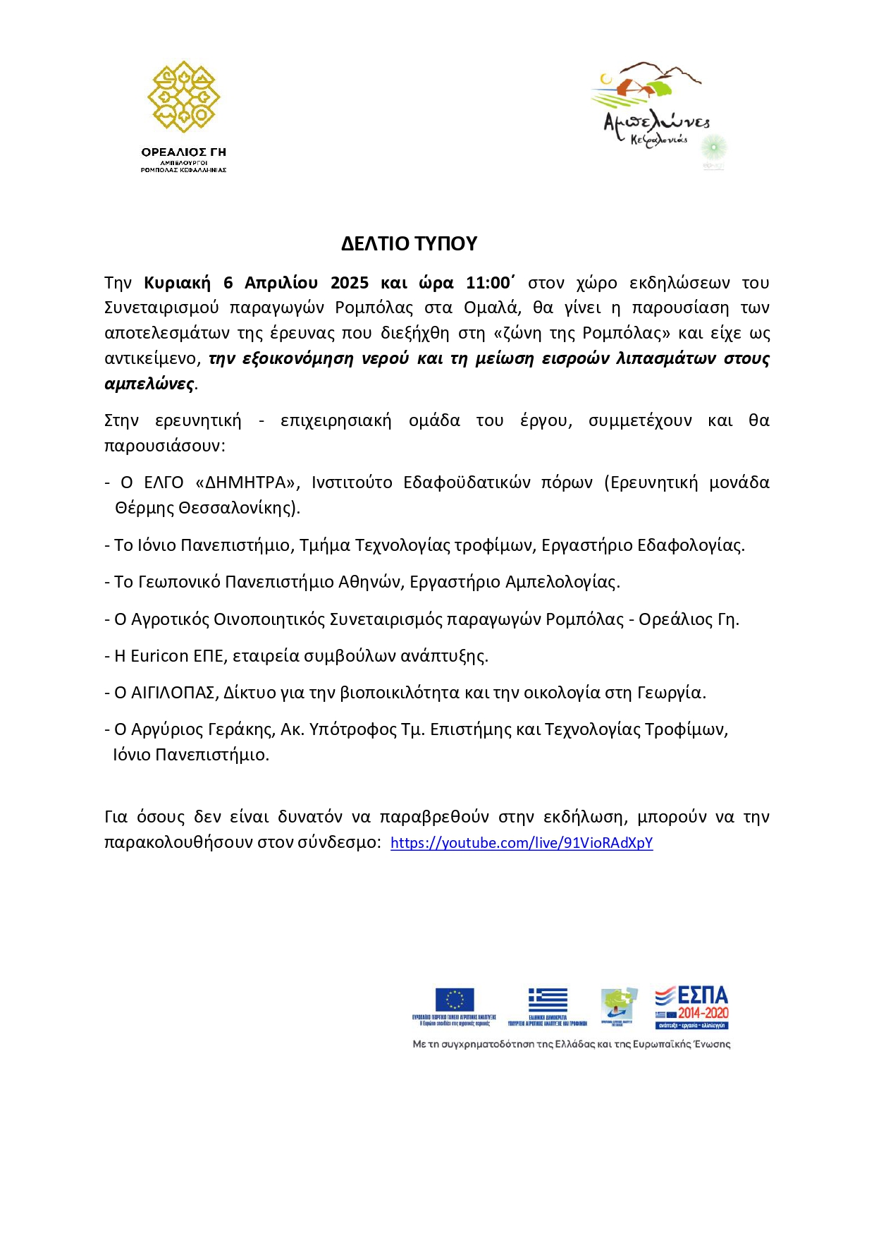 Την Κυριακή 6 Απριλίου η παρουσίαση των αποτελεσμάτων της έρευνας της “Ορεάλιος Γη” για τους αμπελώνες της Κεφαλονιάς