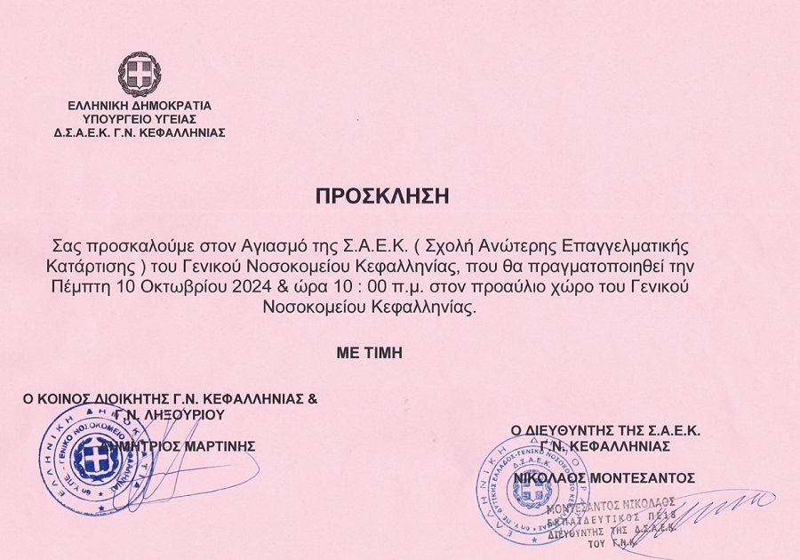 Την Πέμπτη 10 Οκτωβρίου ο Αγιασμός της Σ.Α.Ε.Κ. του Γενικού Νοσοκομείου Κεφαλληνίας