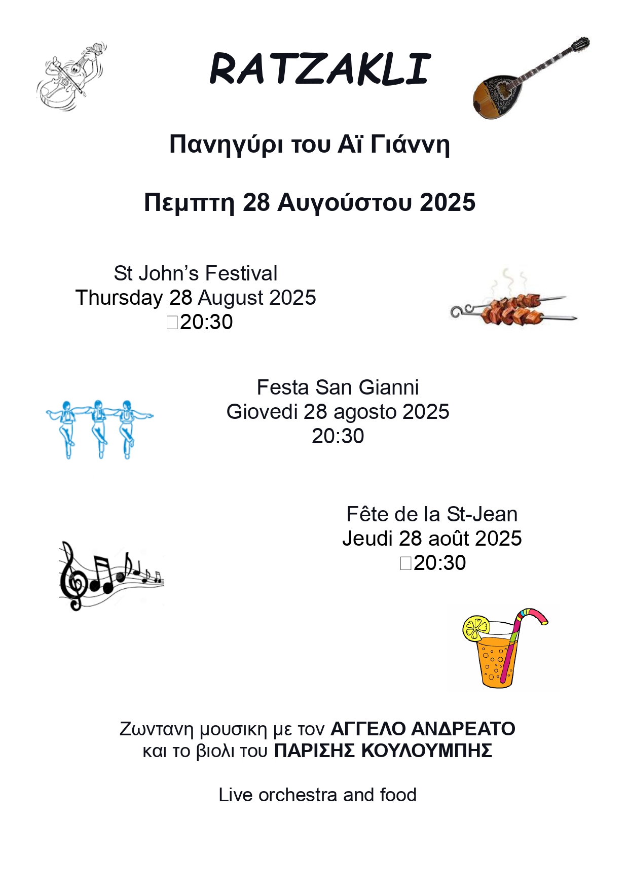 Την Πέμπτη 28 Αυγούστου Πανηγύρι του Άι Γιάννη στο Ρατζακλί