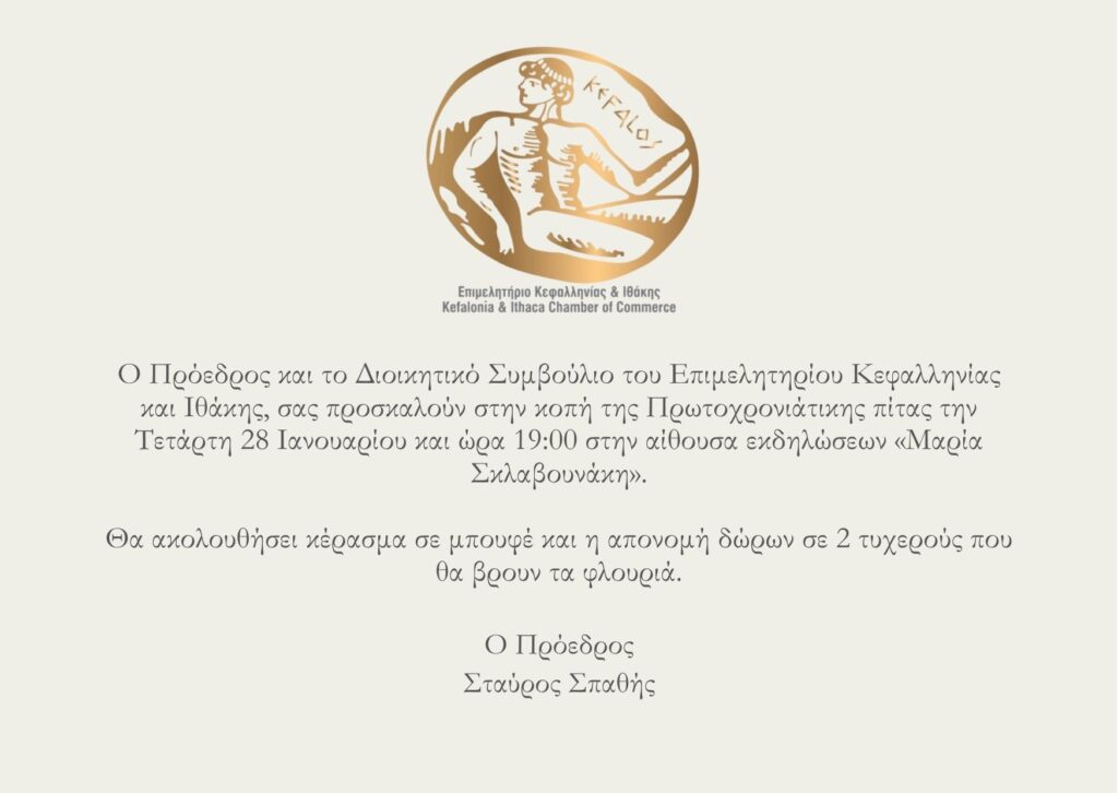 Την Τετάρτη 28 Ιανουαρίου η κοπή της Πρωτοχρονιάτικης Πίτας του Επιμελητηρίου Κεφαλληνίας & Ιθάκης