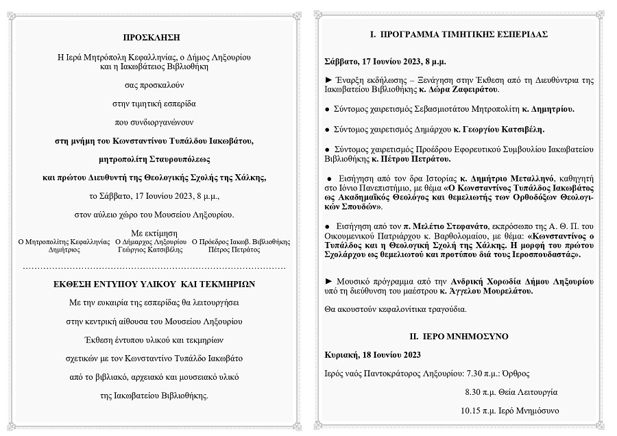 Τιμητική εκδήλωση στη μνημη του Κωνσταντίνου Τυπάλδου Ιακωβάτου
