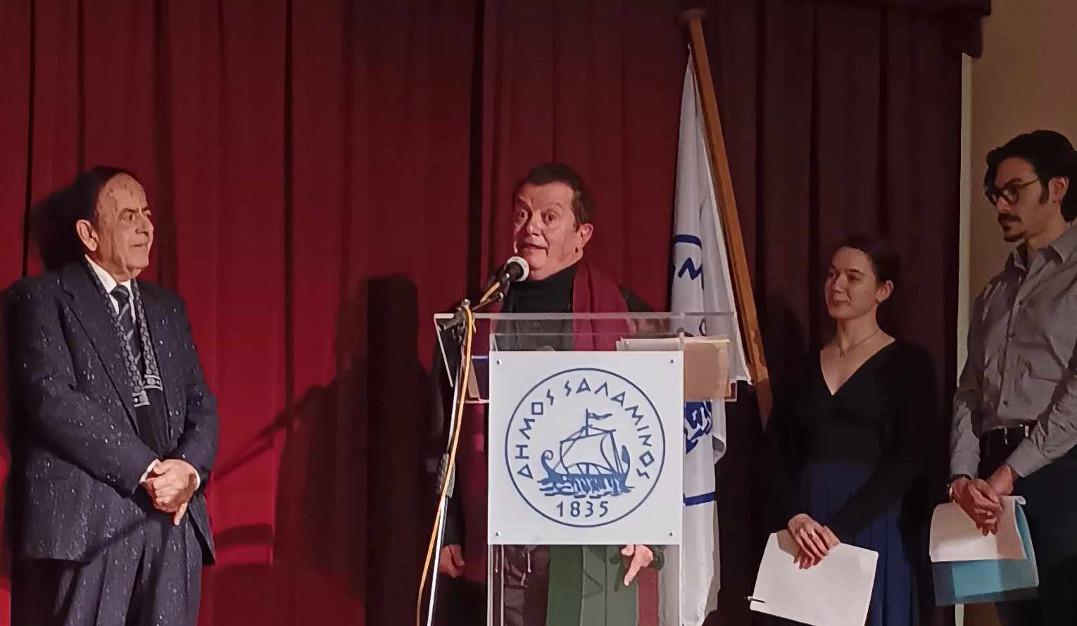 Τιμητικό δίπλωμα και χρυσό μετάλλιο του Μεγάλου Αλεξάνδρου στον Κώστα Ευαγγελάτο στο Δημαρχείο Σαλαμίνας