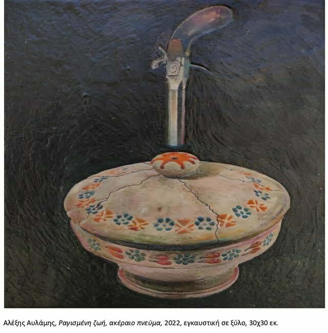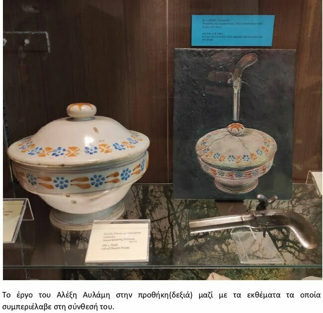 Από τους σύγχρονους καλλιτέχνες ο Αλέξης Αυλάμης, στο πλαίσιο της ατομικής του έκθεσης στο Κοργιαλένειο Μουσείο (29 Ιουνίου -21 Οκτωβρίου 2022) απέδωσε την ίδια σουπιέρα σε συνδυασμό με ένα πιστόλι από τις αρχές του δεκάτου ενάτου αιώνα, δωρεά στο Μουσείο της Κλεάνθης Πολλάκη από τα Φαρακλάτα. Με τον τίτλο Ραγισμένη ζωή, ακέραιο πνεύμα θέλησε να αποδώσει το εύθραυστο της ζωής, η