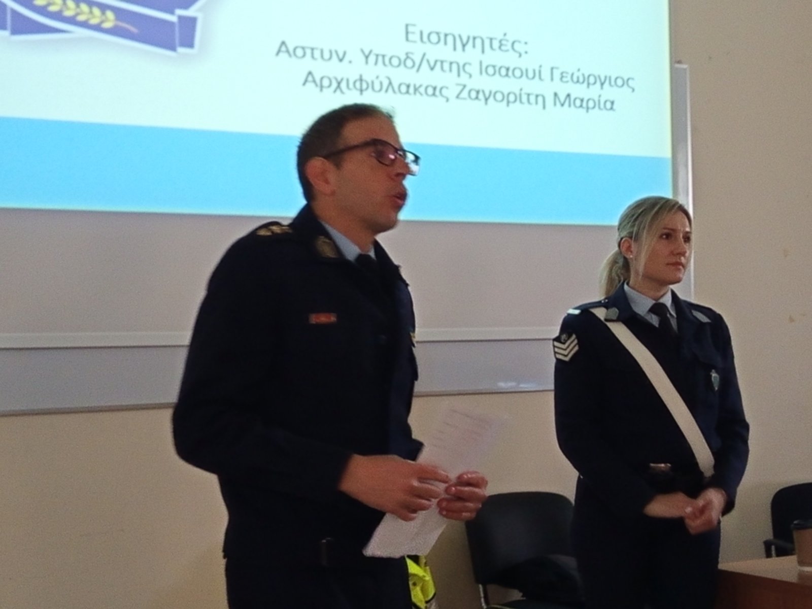 Με ιδιαίτερη χαρά υποδεχθήκαμε στο Λύκειό μας εκπροσώπους του Τμήματος Τροχαίας Αργοστολίου και συγκεκριμένα τον Αστυνομικό Υποδιευθυντή κ. Ισαουί Γεώργιο και την Αρχιφύλακα κα Ζαγορίτη Μαρία, οι οποίοι μίλησαν στους μαθητές και στις μαθήτριές μας για την οδική ασφάλεια και την υπεύθυνη συμπεριφορά στον δρόμο.