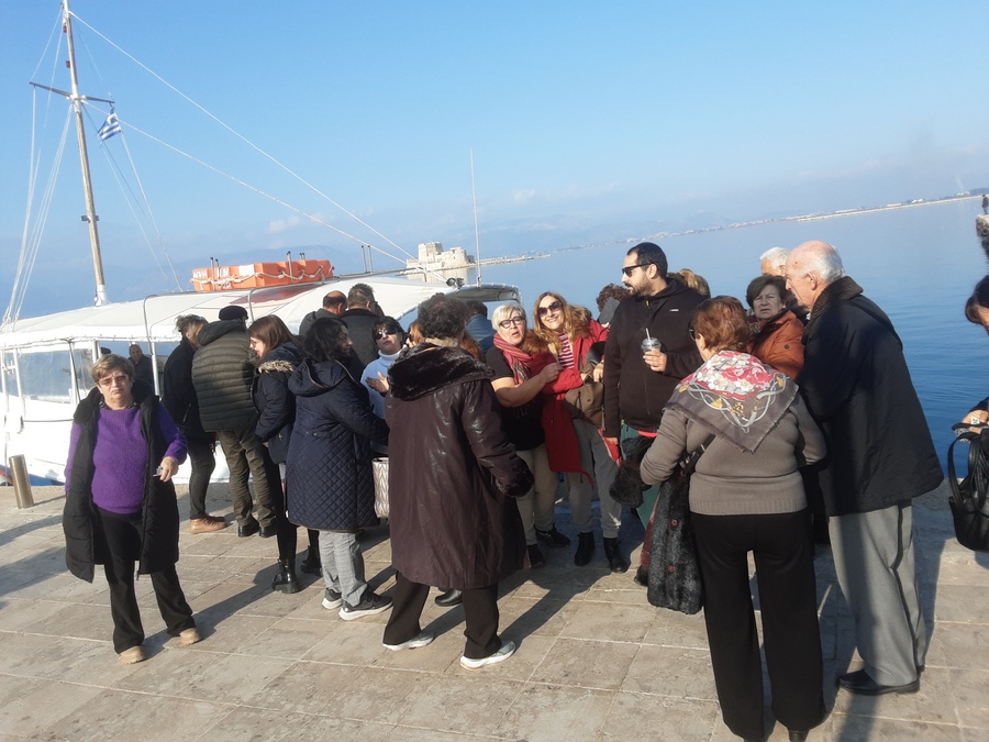 Την επόμενη μέρα μετά το πρωινό, πρώτος μας σταθμός, ήταν το Κάστρο του Παλαμηδίου, ένα από τα ωραιότερα κάστρα της Ελλάδας και το μεγαλύτερο και καλύτερα διατηρημένο φρουριακό συγκρότημα της Ενετοκρατίας. Επόμενος σταθμός το μαγευτικό Μπούρτζι, σπουδαίο μνημείο και ένα από τα πιο σημαντικά οχυρωματικά έργα του Ελλαδικού χώρου. Στη συνέχεια επισκεφτήκαμε και άλλα σημεία ιστορικού ενδιαφέροντος στο Ναύπλιο όπως, η πλατεία Συντάγματος, το αρχαιολογικό και το πολεμικό μουσείο και περιηγηθήκαμε στα γραφικά σοκάκια του Ναυπλίου. Το μεσημεριανό γεύμα το απολαύσαμε στη παλιά πόλη, παρουσία του Προέδρου μας κ. Γεώργιου Λασκαράτου, ο οποίος αφού χαιρέτησε τα μέλη μας , και τους ευχήθηκε για τις γιορτές των Χριστουγέννων, δέχτηκε τις ευχαριστίες τους, για την εκδρομή αυτή . Την 3η μέρα, πήραμε το δρόμο της επιστροφής μας, με πρώτη στάση την Αρχαία Επίδαυρο. Εκεί μας περίμενε ο ξεναγός μας, για την καθιερωμένη ξενάγησή του αρχαίου θεάτρου. Στη συνέχεια περάσαμε και από τις Μυκήνες. Τέλος κατευθυνθήκαμε προς την Κυλλήνη, προκειμένου να επιβιβαστούμε στο πλοίο της επιστροφής μας για την Κεφαλονιά.