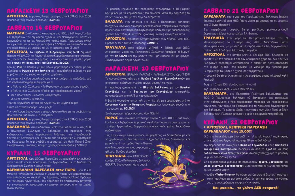 Το πρόγραμμα του Αργοστολιώτικου Καρναβαλιού 2026