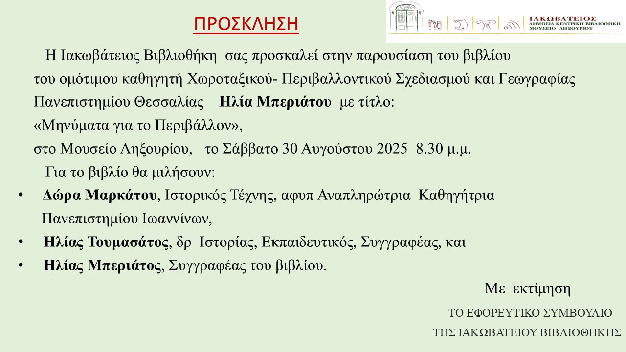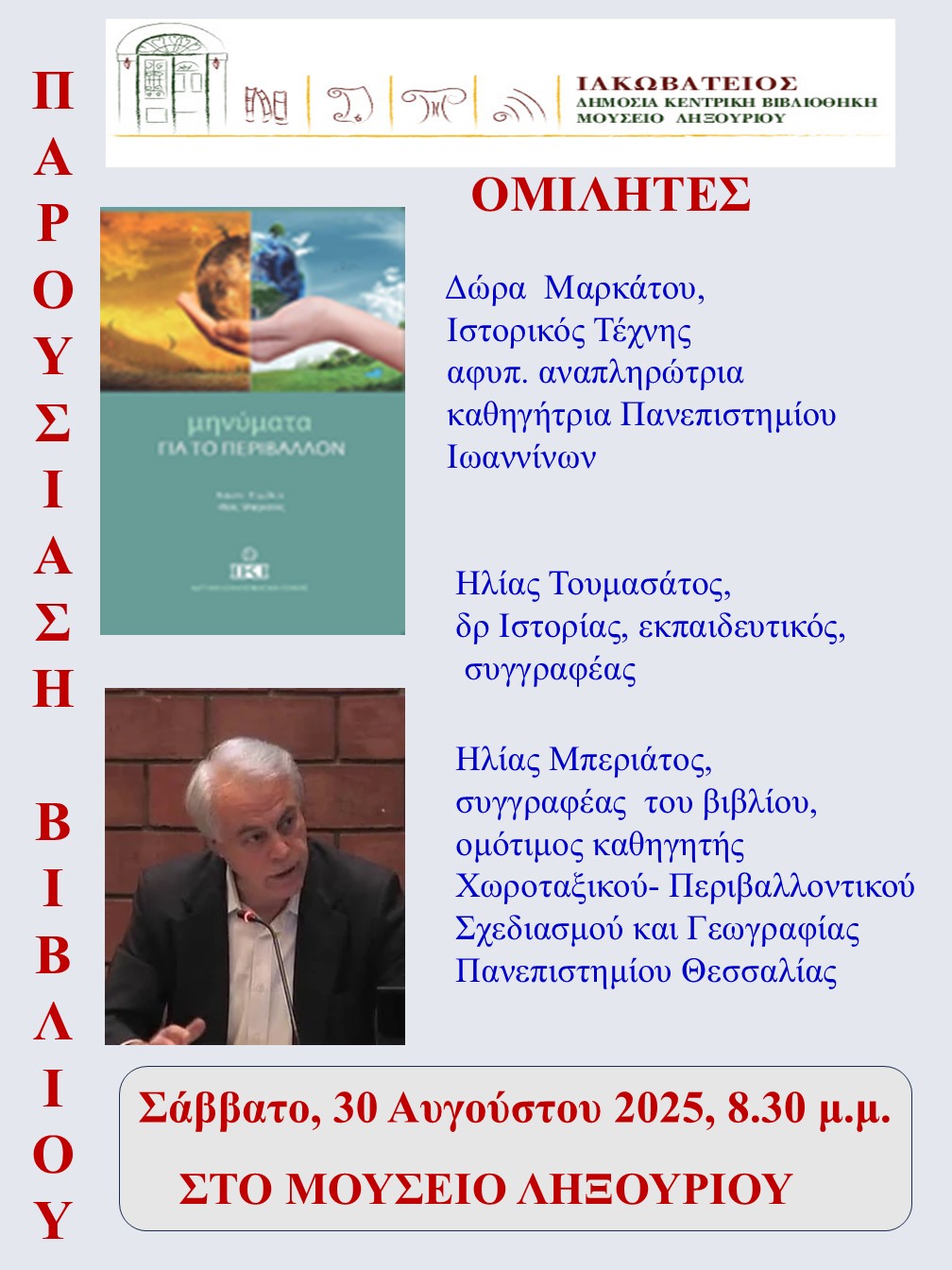 Το Σάββατο 30 Αυγούστου η παρουσίαση του βιβλίου του Ηλία Μπεριάτου στο Μουσείο Ληξουρίου