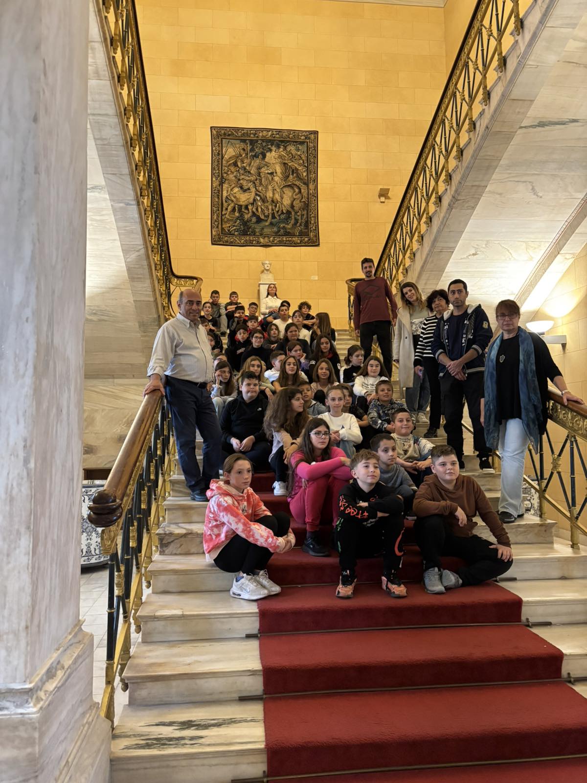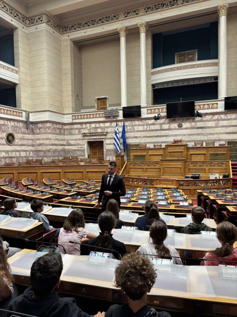 Κατά τη διάρκεια της ξενάγησης, ο επιστημονικός συνεργάτης μου κ. Γεώργιος Δουλδούρας καλωσόρισε εκ μέρους μου τους μαθητές και τους εκπαιδευτικούς στο Κοινοβούλιο και τους ενημέρωσε σχετικά με τη λειτουργία της Βουλής και τον ρόλο της στην εκπροσώπηση των πολιτών.