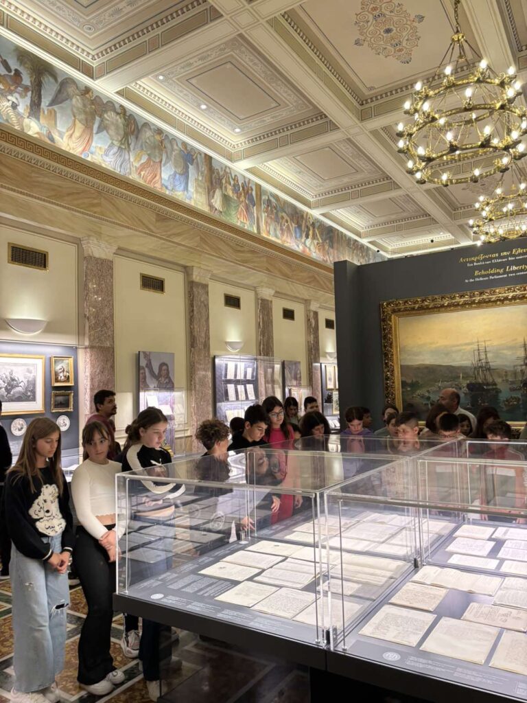 Οι μαθητές περιηγήθηκαν στους χώρους του Κοινοβουλίου και γνώρισαν από κοντά την ιστορία του. Ξεναγήθηκαν στην έκθεση που φιλοξενείται στην Αίθουσα «Ελευθέριος Βενιζέλος», όπου εκτίθενται μοναδικά εικαστικά και κειμενικά τεκμήρια που αφηγούνται την πορεία των Ελλήνων προς την Ελευθερία.