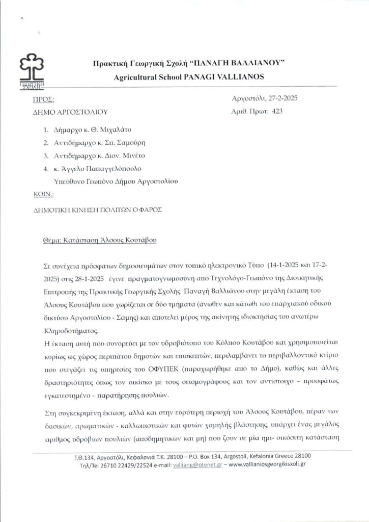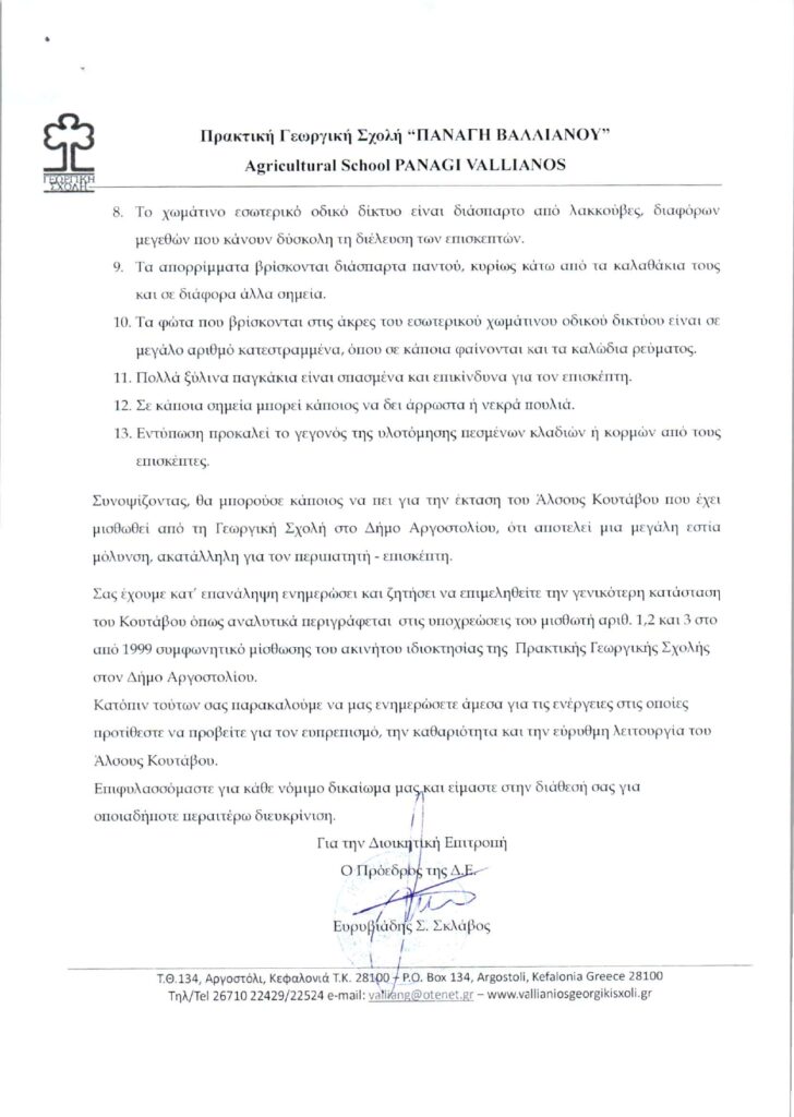 Η παρέμβαση μας στον αξιότιμο κύριο Εισαγγελέα ως ύστατη μορφή για την σωτηρία του ΚΟΥΤΆΒΟΥ, ήταν εν γνώσει του Βαλλιάνειου Ιδρύματος από το οποίο λάβαμε την ακόλουθη επιστολή που σας κοινοποιούμε.