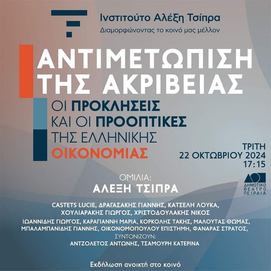Ενδιαφέρουσες συζητήσεις, σημαντικές παρεμβάσεις, ελπιδοφόρο κλείσιμο, απόψε στην εκδήλωση του Ινστιτούτου Αλέξη Τσίπρα για την ακρίβεια και την οικονομία.