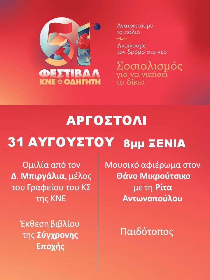 Φεστιβάλ ΚΝΕ Οδηγητή Κυριακή 31 Αυγούστου στο Ξενία