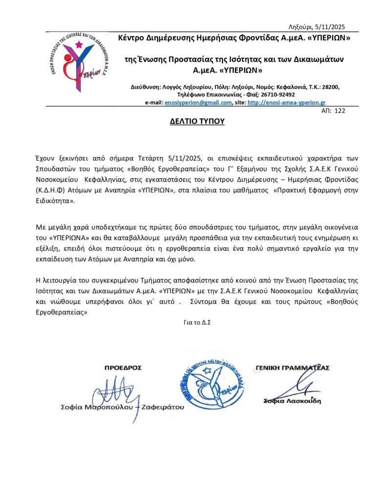 Φιλοξενία Σπουδαστών της ΣΑΕΚ Γενικού Νοσοκομείου Αργοστολίου στον “ΥΠΕΡΙΩΝΑ”